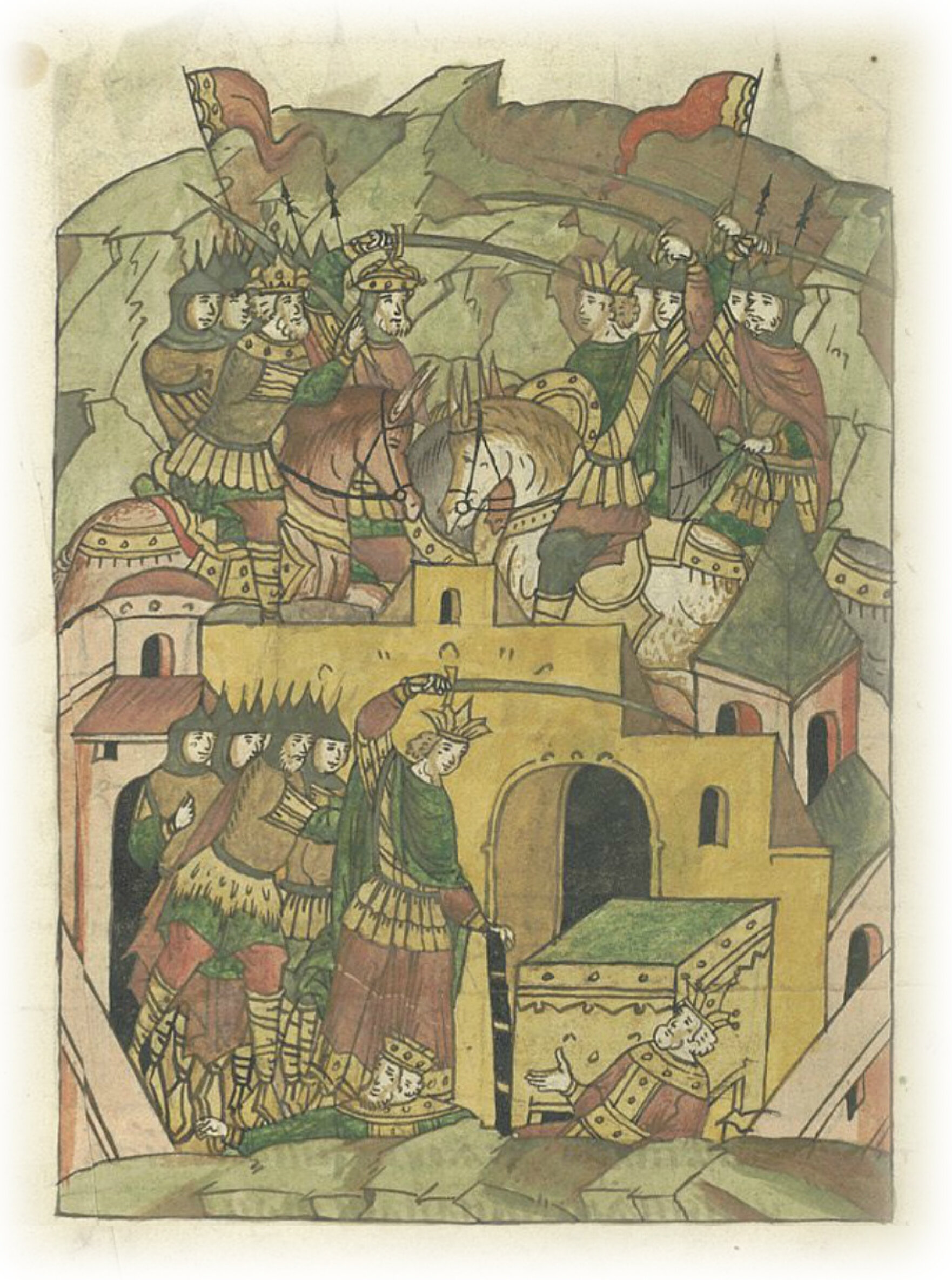 В том же году заратились в Орде цари Тохта с Телебугою и Солгуем, и одолел Тохта. В том же году Ногой царь убил Телебугу царя и Солгуя.