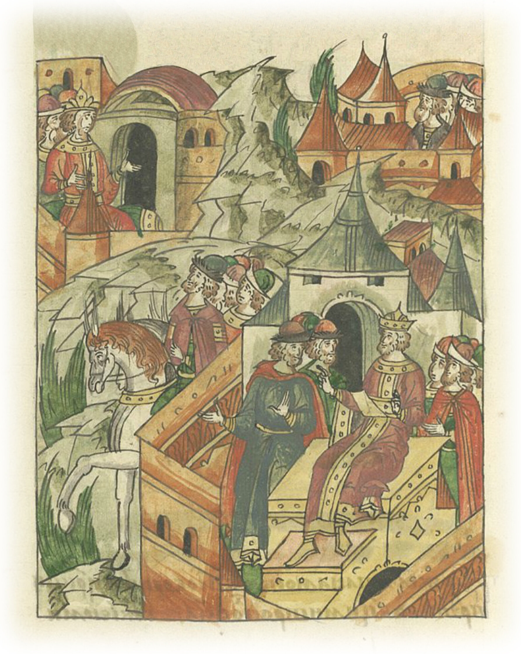 Ругодивские посадники Яким и Захар приезжают в Москву. Воеводы царя Ивана Васильевича Алексей Адашев и Иван Михайлов сообщают им, что государь пожалует их, если сдадут его воеводам помимо Ругодива Вышгород.