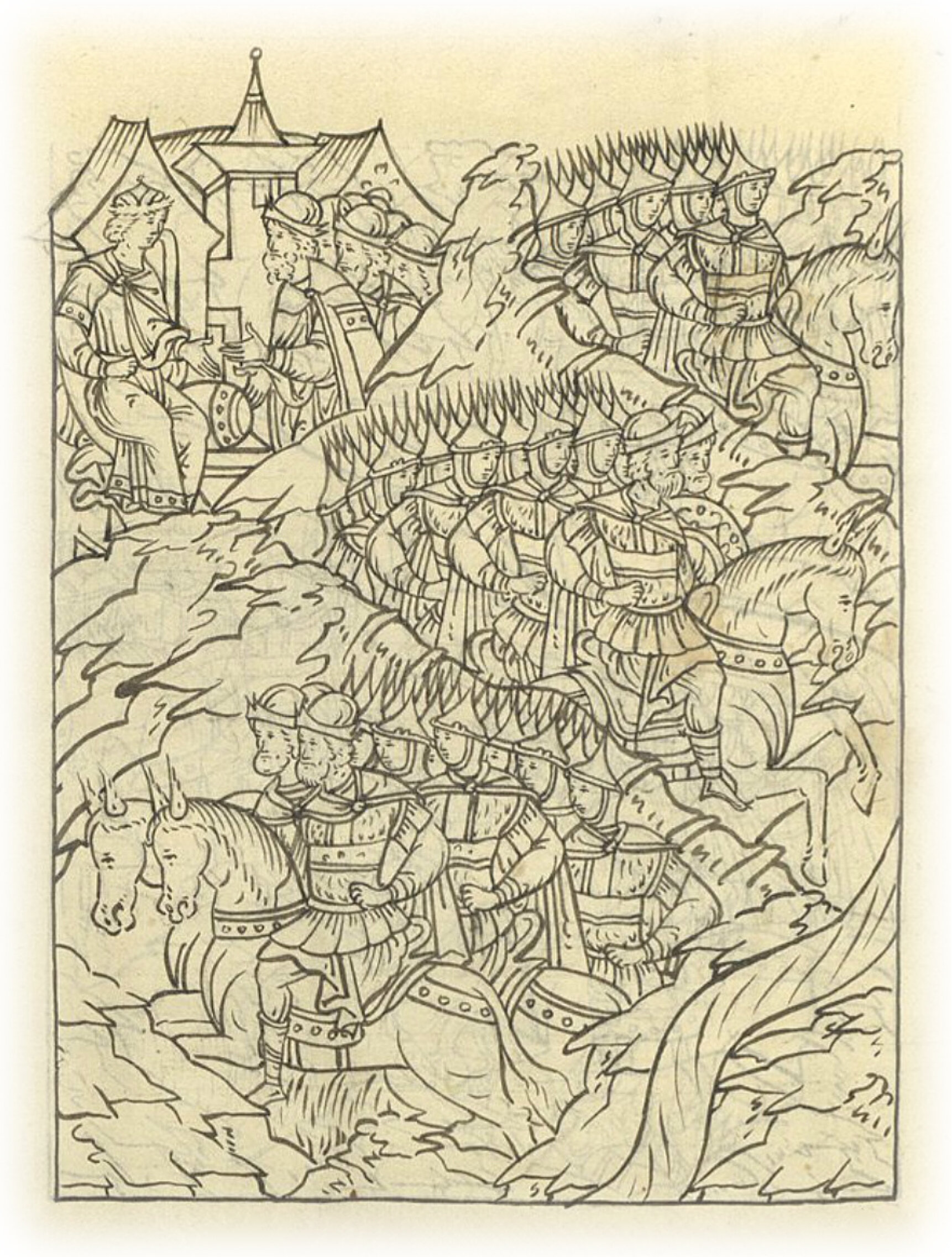 Воеводы царя Ивана Васильевича, разделившись, идут в погоню за царем Емгурчеем.