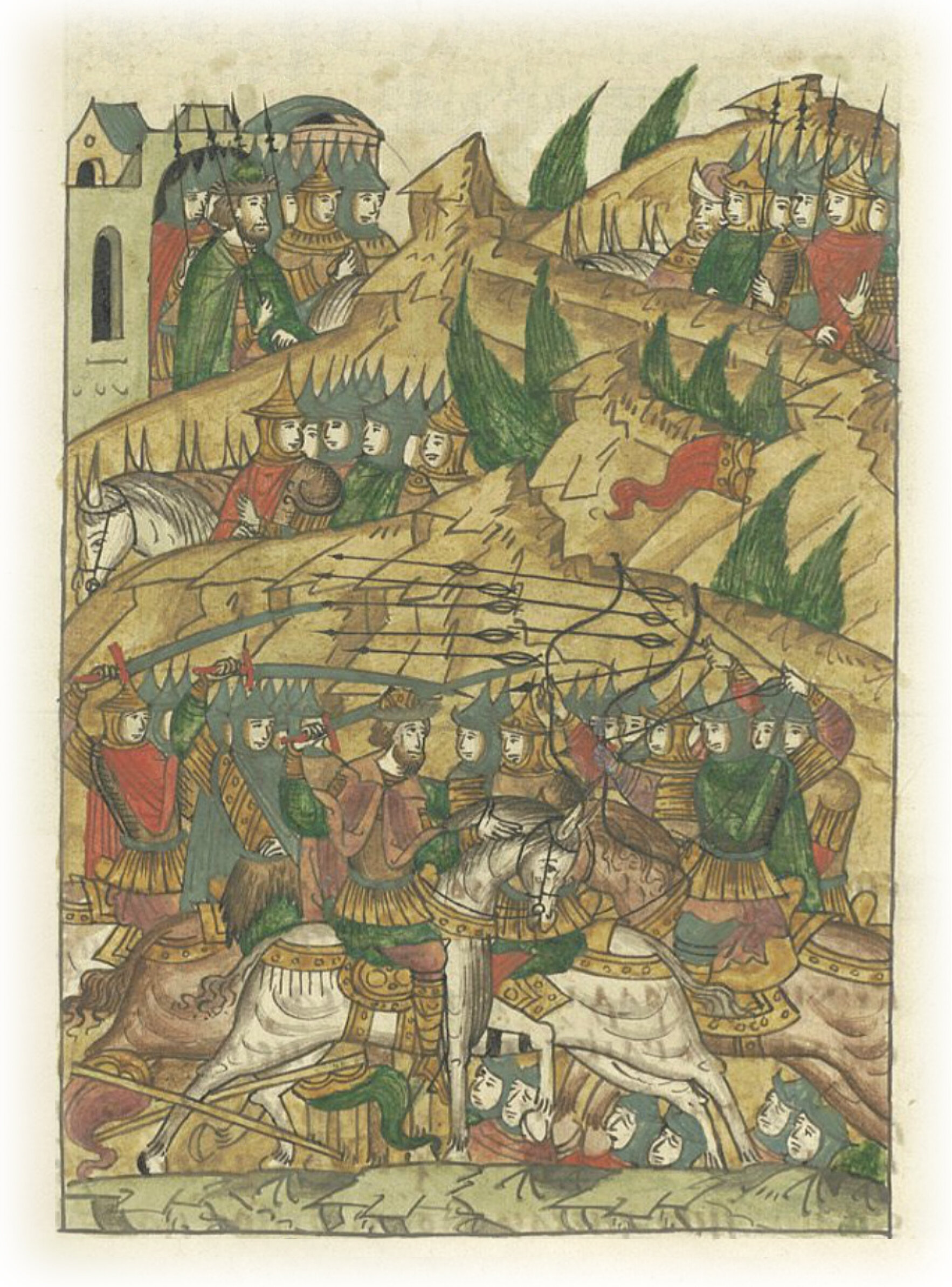 И так князь Святослав Глебович с ратью великою, в силе многой, после полудня вышел против рати татарской и сошелся (с ними) на бой; и помрачили стрелы татарские воздух, и были словно дождь, также копьями и саблями сражались, и была сеча злая. Брянцы же выдали князя Святослава Глебовича Брянского, будучи крамольниками, и стяги пометали, а сами побежали.