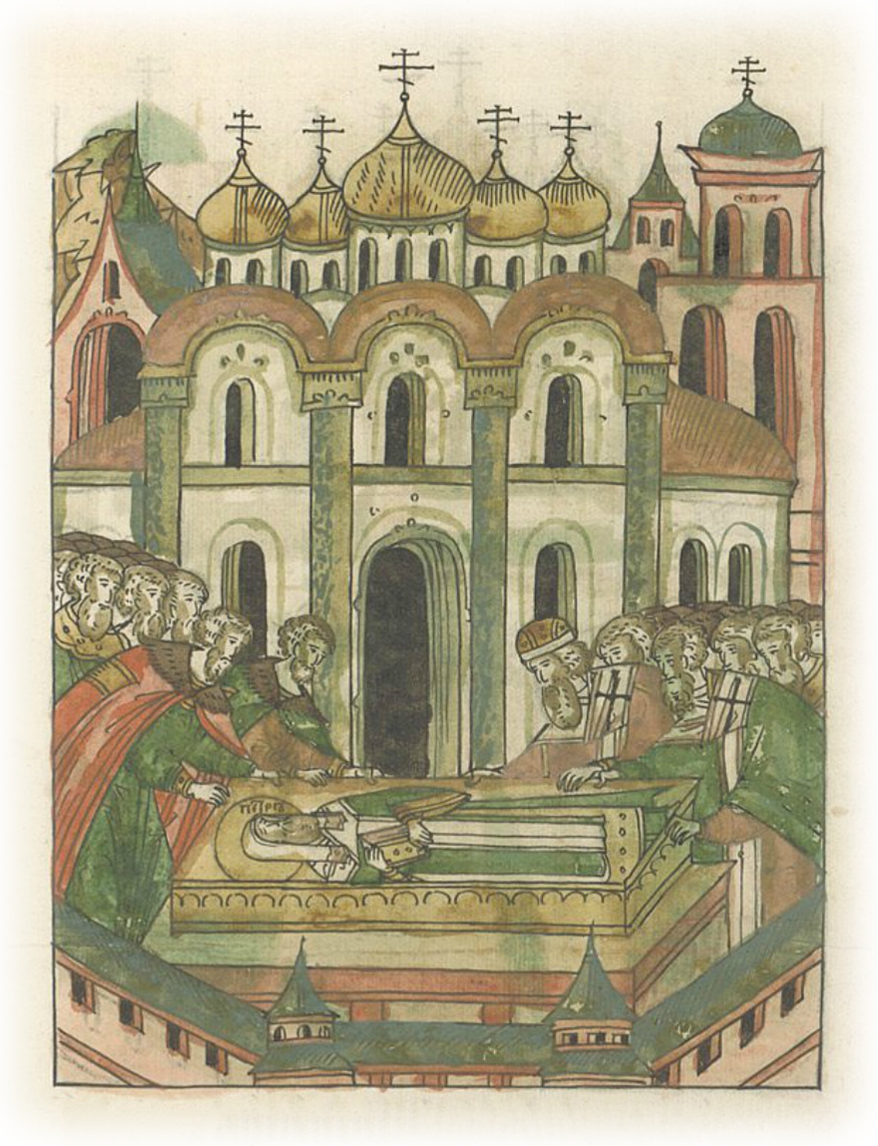 митрополит же сам и святители с ним князю великому и сыну его повелели вместе с собой взять раку, в которой были цельбоносные мощи святого отца нашего Петра митрополита чудотворца,