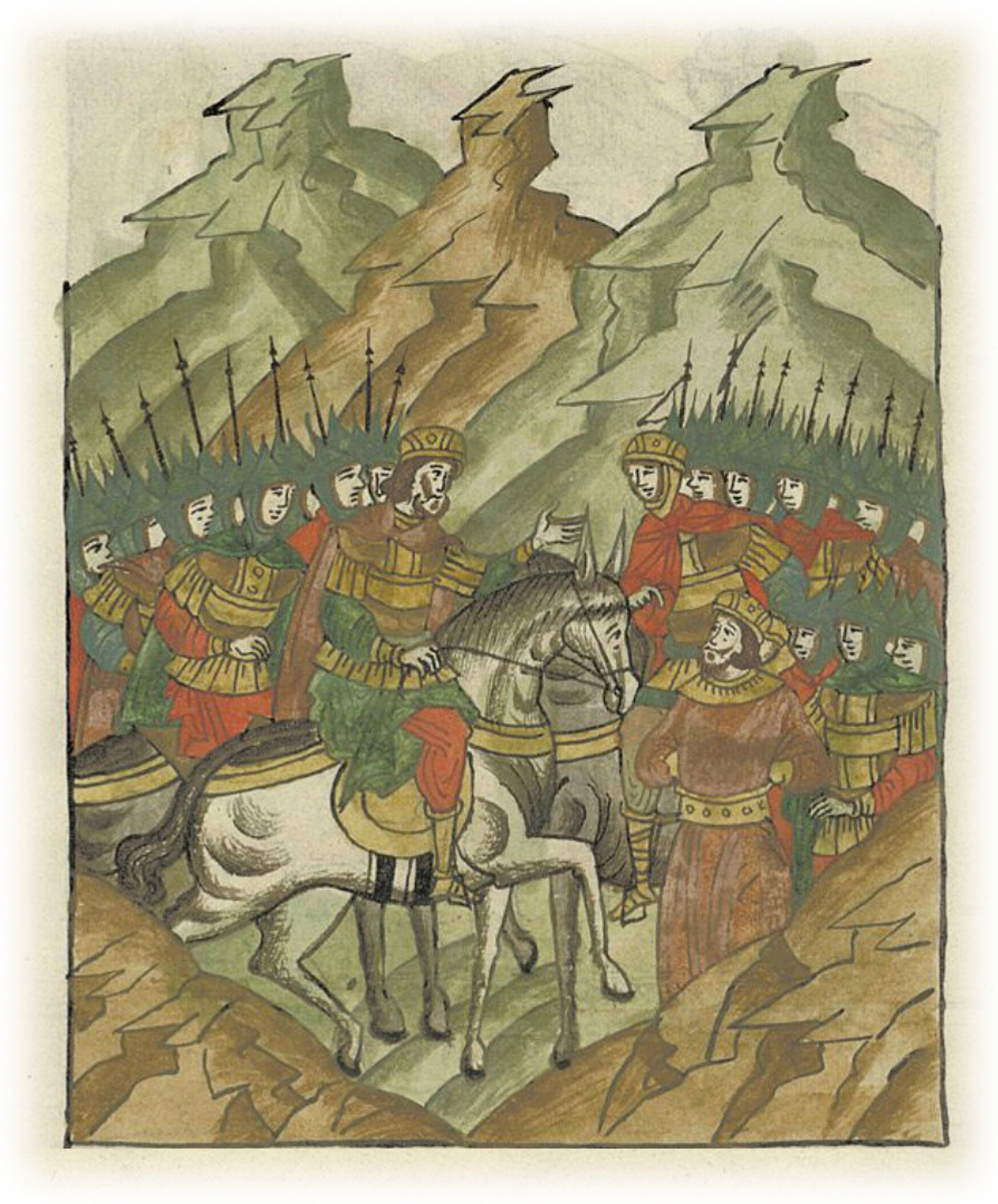 Воеводы царя Ивана Васильевича, разделившись, идут в погоню за царем Емгурчеем.