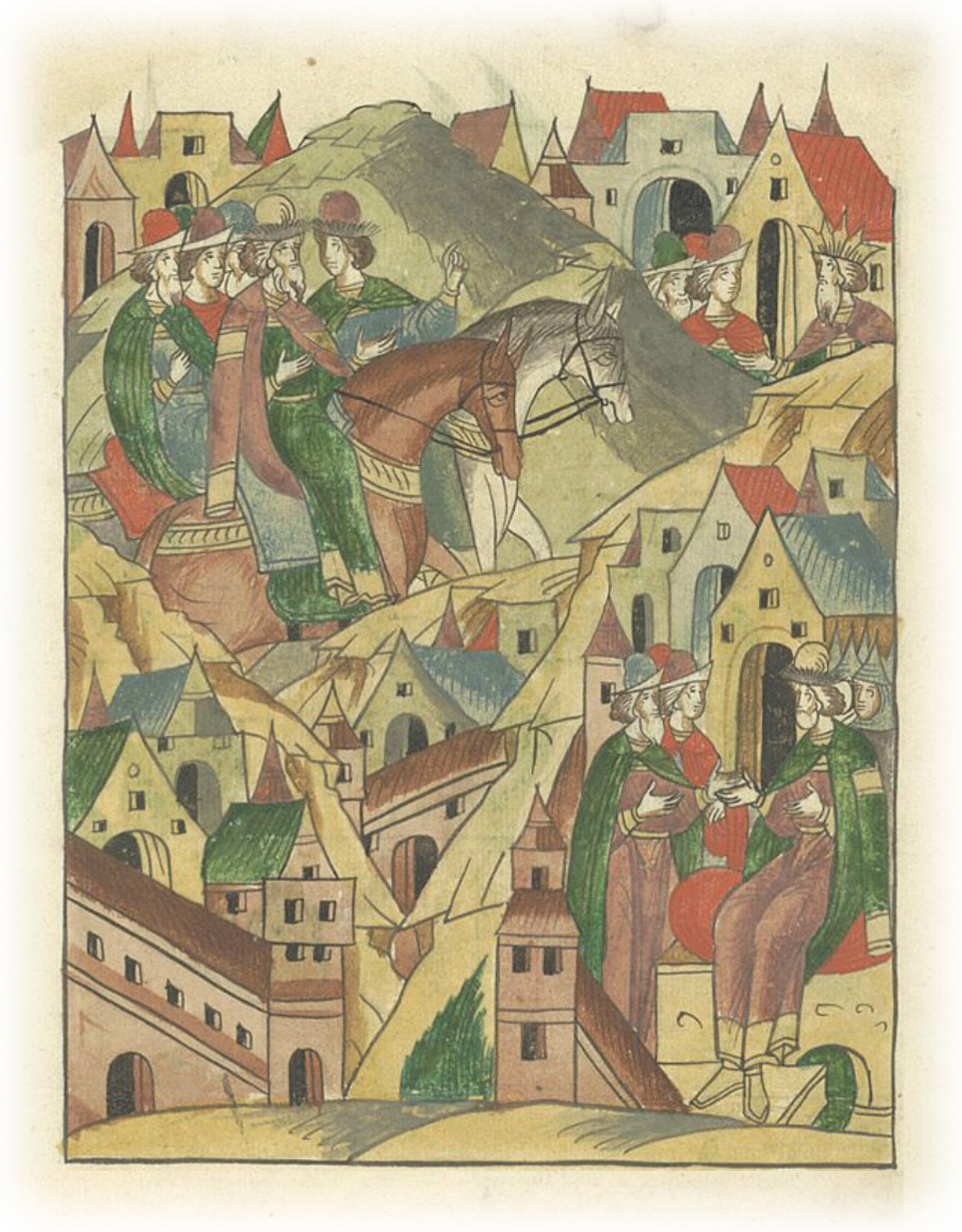 Великий князь Михаил Александрович Тверской с сыном Александром окольными путями идут к царю Тохтамышу в Орду за Владимирским и Новгородским княжениями, таясь от великого князя Дмитрия Ивановича.
