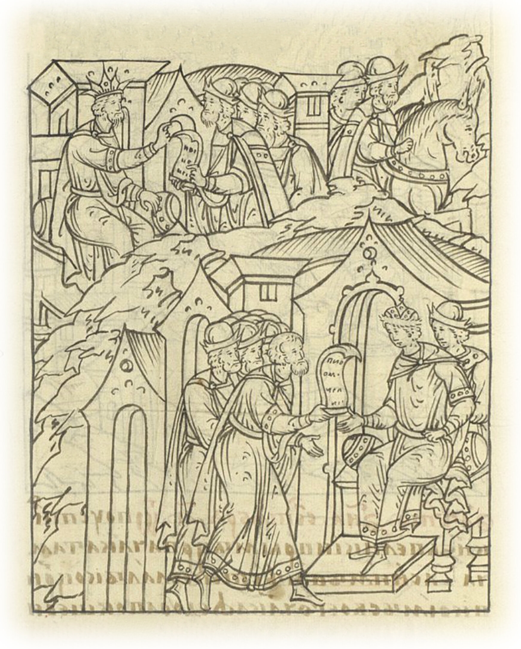 Послы великого князя Ивана Васильевича приходят от Польского короля Сигизмунда с грамотой о перемирии.