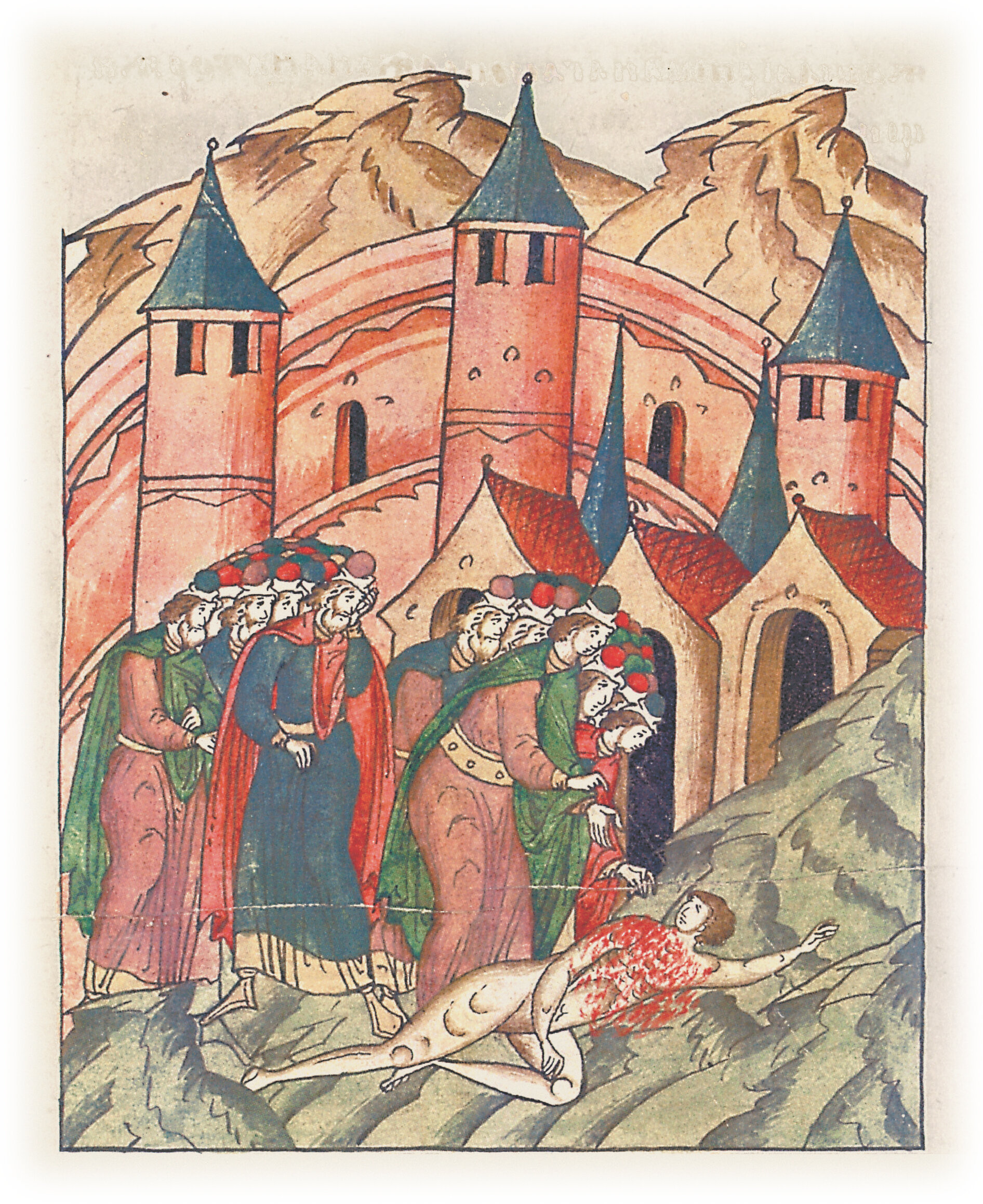 Многие же люди мимо ходили и плакали, видя господина своего бывшего, великого князя Киевского, уже иноком ставшего и лежащего нагим, брошенным на торжище.
