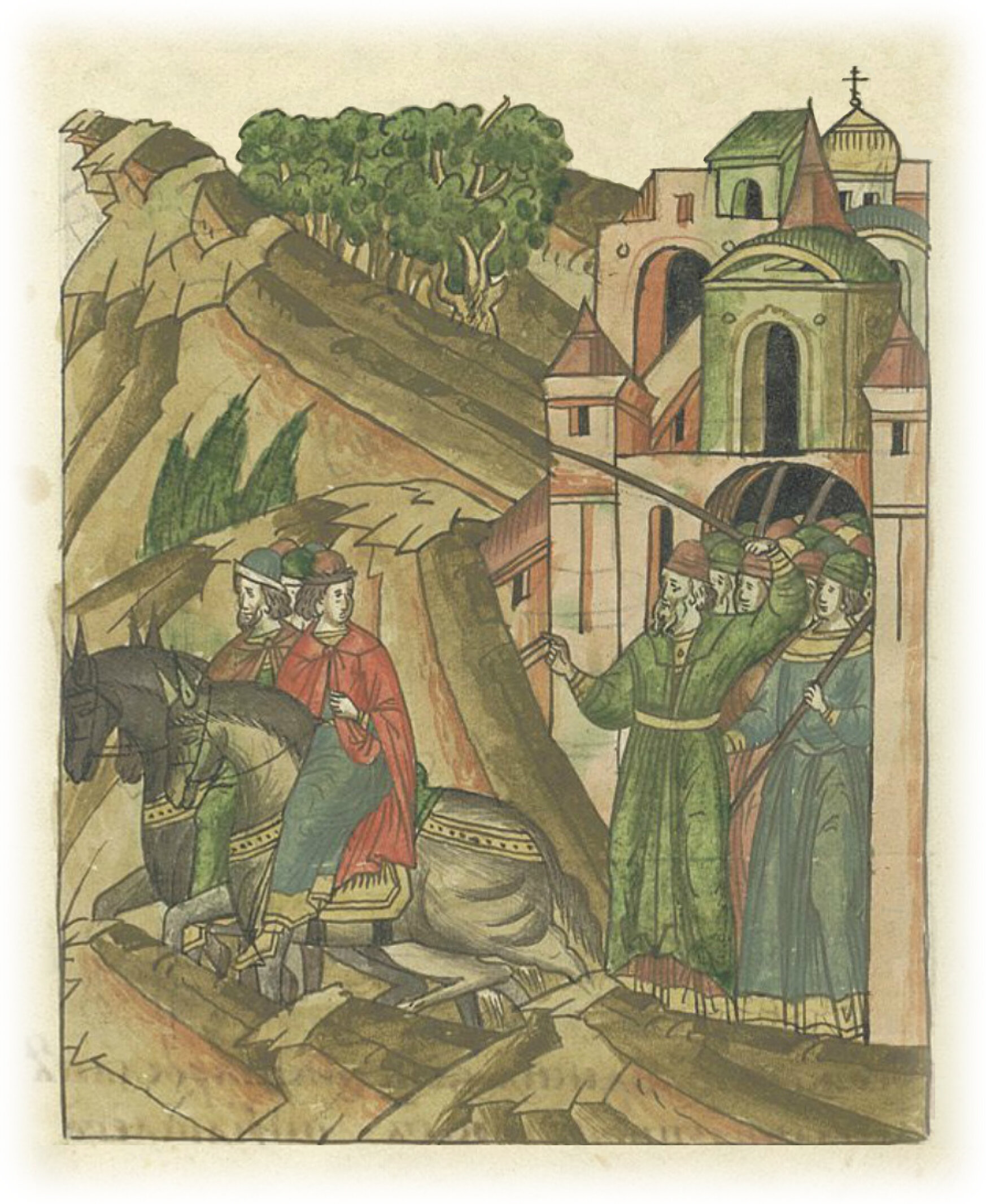 Ругодивские посадники Яким и Захар приезжают в Москву. Воеводы царя Ивана Васильевича Алексей Адашев и Иван Михайлов сообщают им, что государь пожалует их, если сдадут его воеводам помимо Ругодива Вышгород.