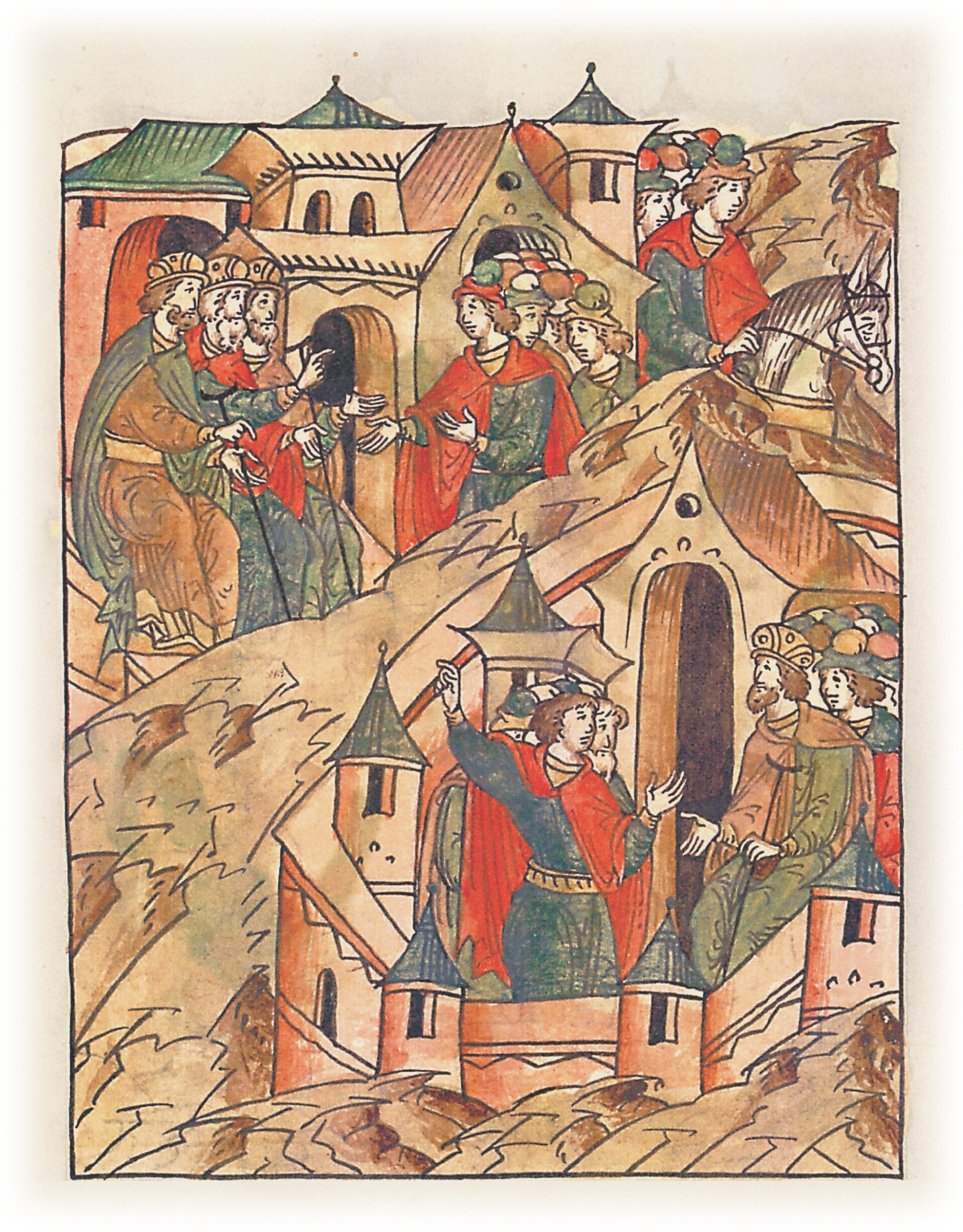 И послали тогда в Галич и Владимир послов своих рассказать о любви своей, как соединил их Бог и крест честной. Они же, узнав о соединении братьев, не пошли на них.