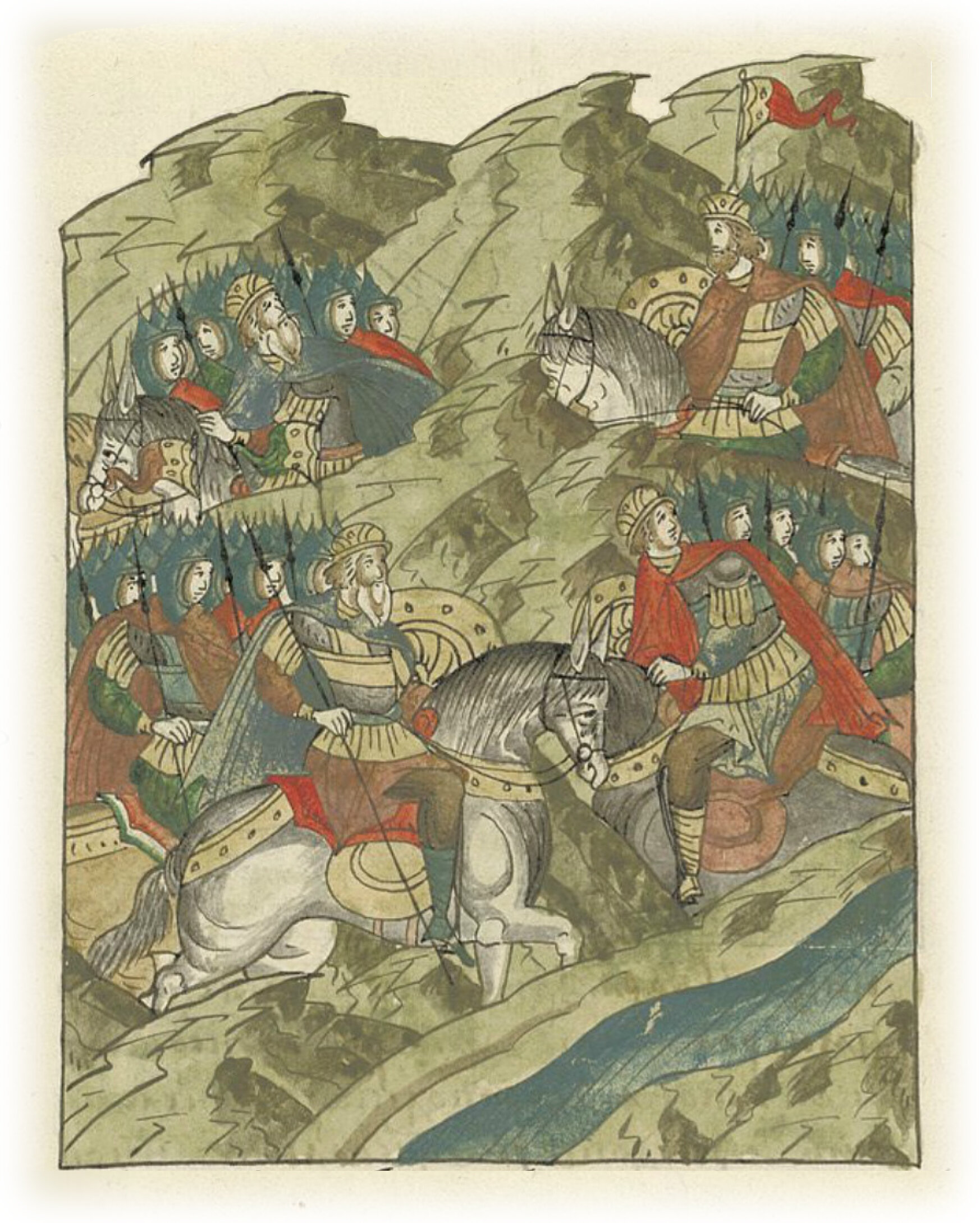 Воеводы царя Ивана Васильевича, разделившись, идут в погоню за царем Емгурчеем.