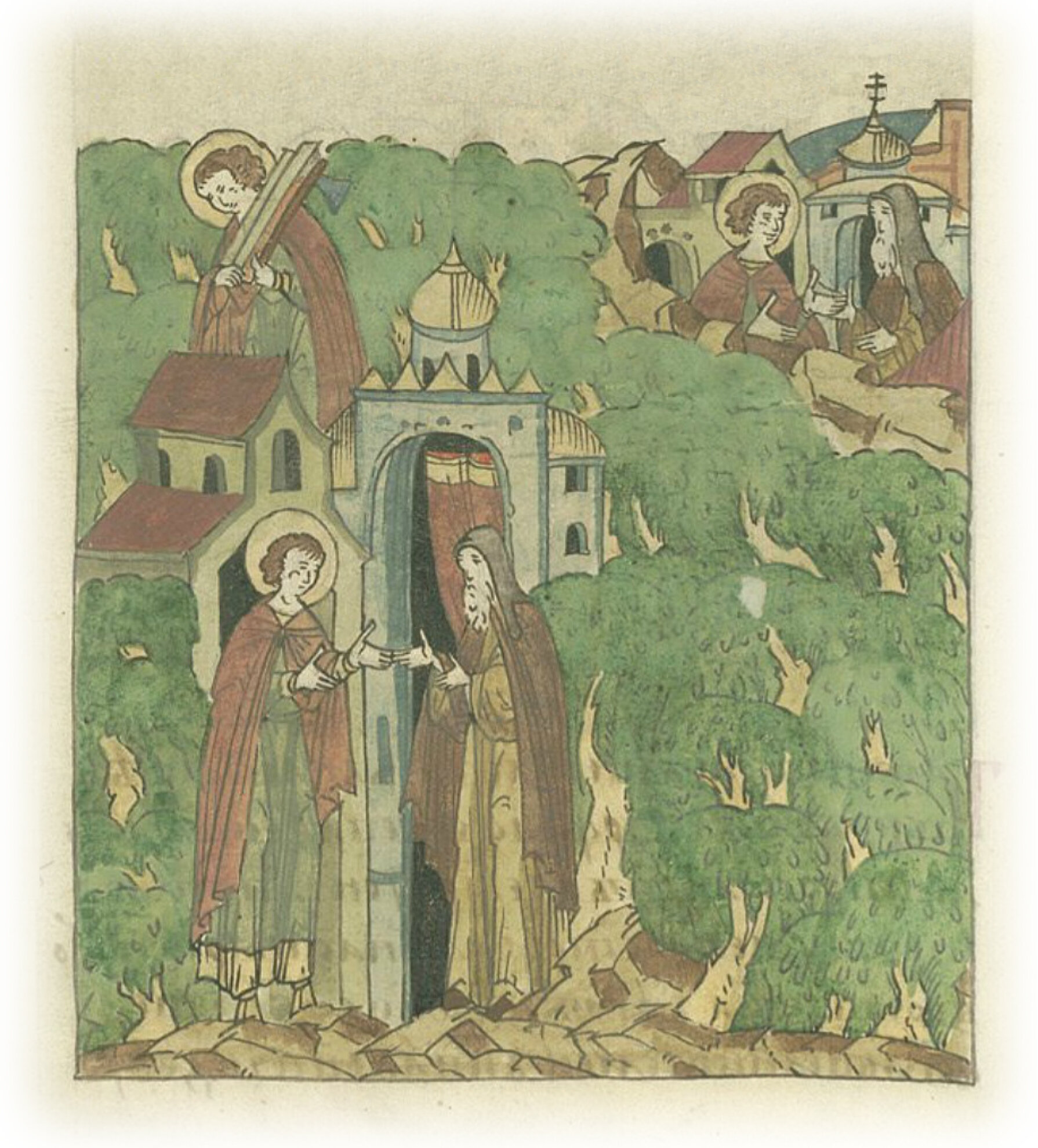 Повесть о преподобном Сергии Радонежском. Варфаломей призывает к себе в пустынное место игумена Митрофана и просит постричь его в иноческий чин.