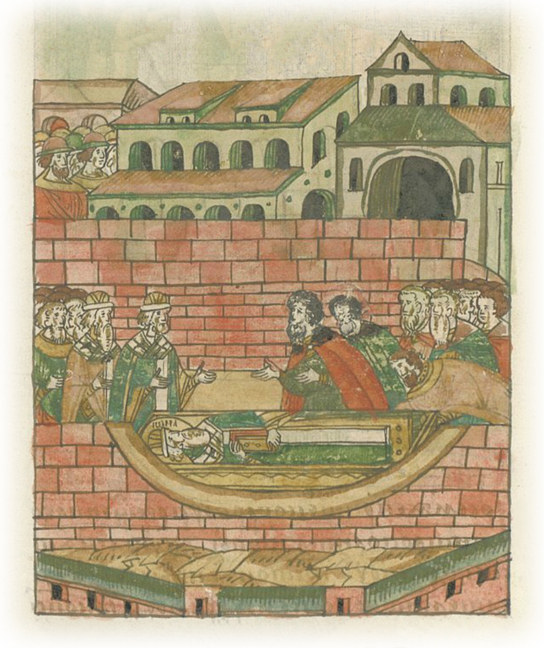 Создание соборной церкви Успения пресвятой Богородицы в Москве митрополитом всея Руси Филиппом. Перенос раки с мощами митрополита Ионы.
