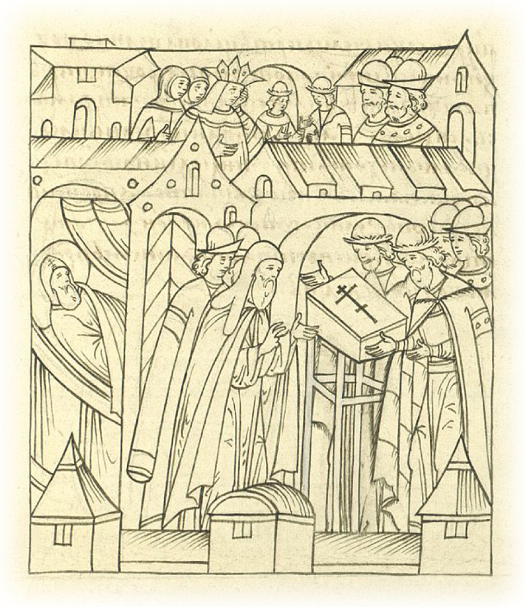 Митрополит всея Руси Даниил приводит братьев великого князя Василия Ивановича, князей Юрия и Андрея Ивановичей, к крестному целованию в том, чтобы служить великому князю Ивану Васильевичу и его матери, великой княгине Елене.