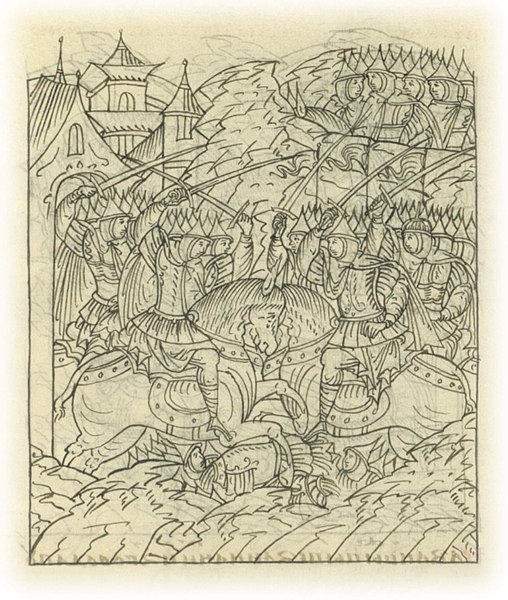 Языки говорят воеводам царя Ивана Васильевича, что магистр окопался большим рвом вокруг города Рындола, бьет из пушек и пищалей и приступает к Рындолу.