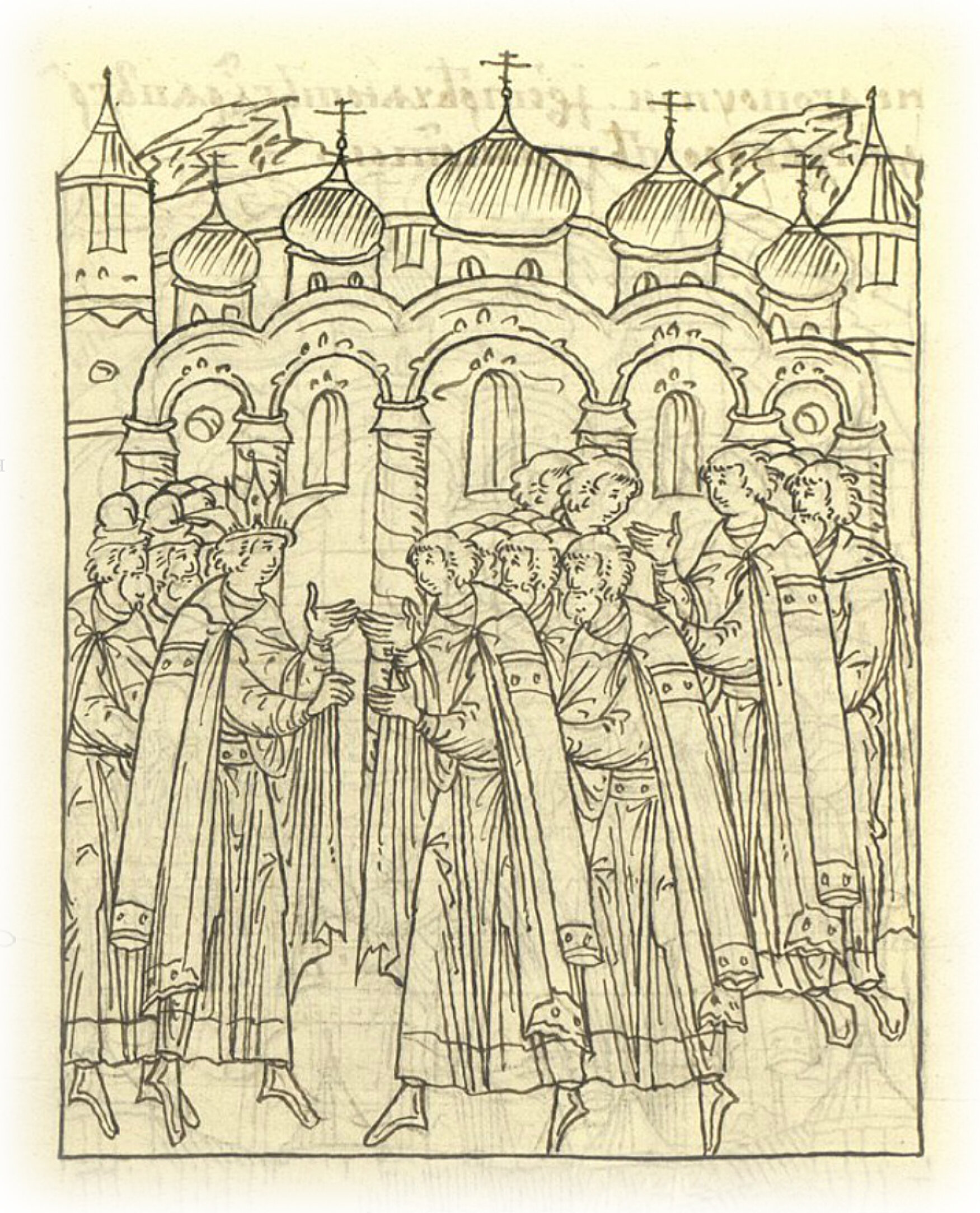 и пели дьяки многолетие государю, а князь Владимир Андреевич и все князья, и бояре здравствовали государя в Богом дарованной ему отчине в новопросвещенном месте.