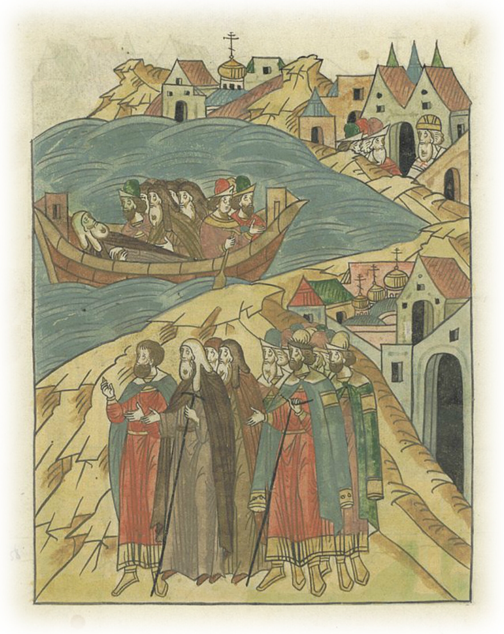 Также потом пошел из Москвы к патриарху в Царьград ставиться в митрополиты, его же честно сам князь великий проводил со всеми боярами своими. Он же, немного не дойдя до Царьграда, преставился.