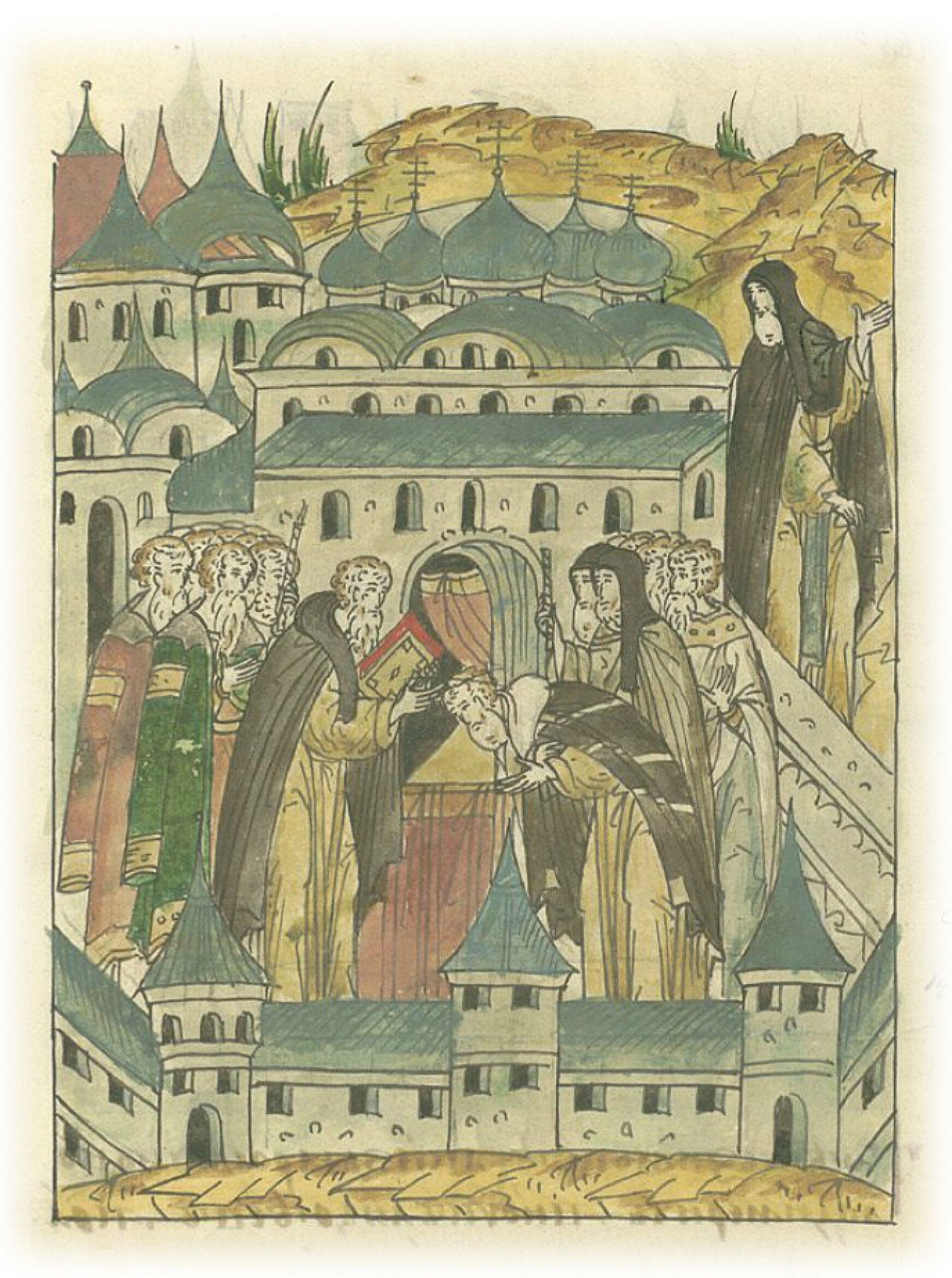 Новгородский владыка Иоанн постригается в схиму и уходит из епископского дома.