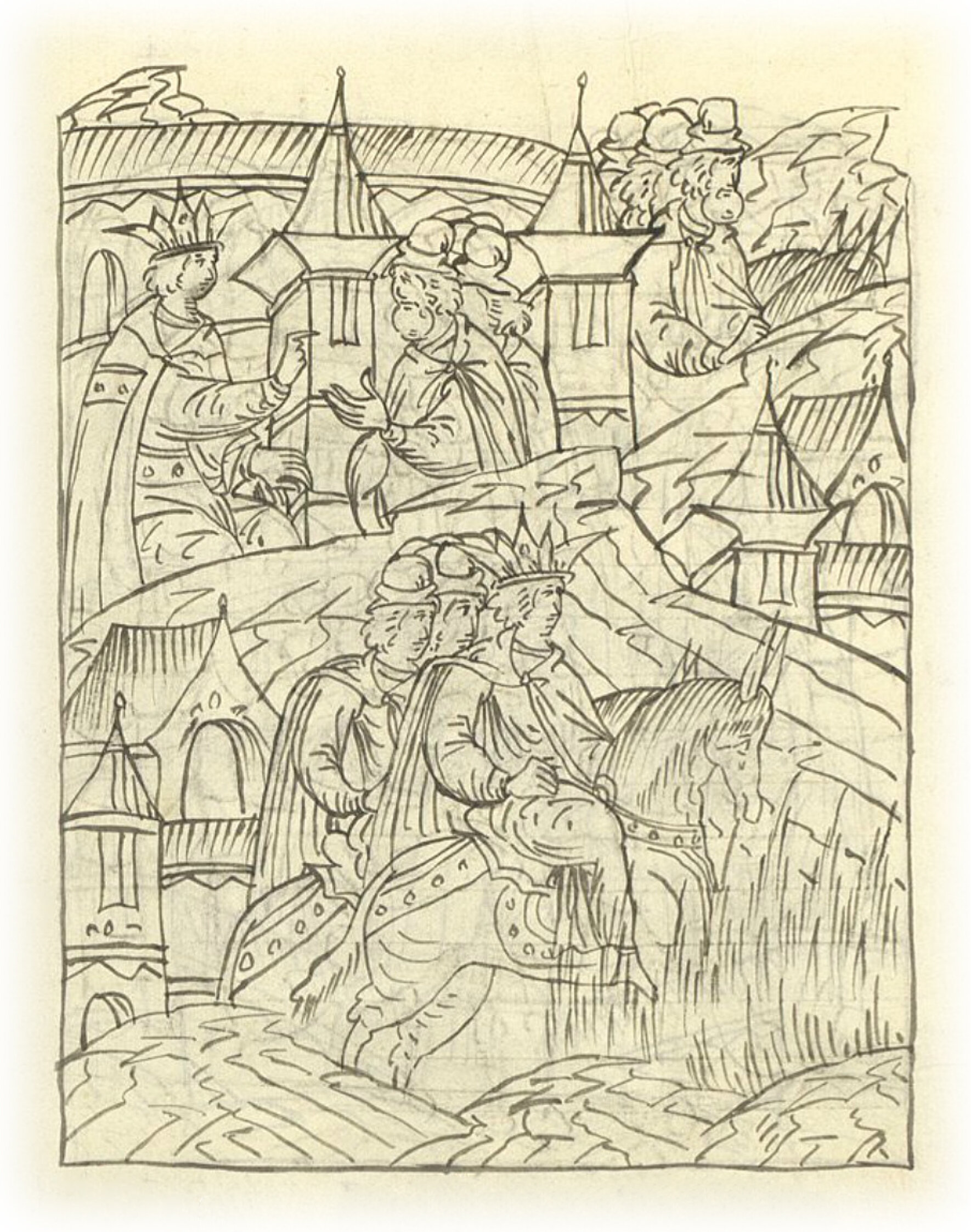 Ругодивские посадники Яким и Захар приезжают в Москву. Воеводы царя Ивана Васильевича Алексей Адашев и Иван Михайлов сообщают им, что государь пожалует их, если сдадут его воеводам помимо Ругодива Вышгород.