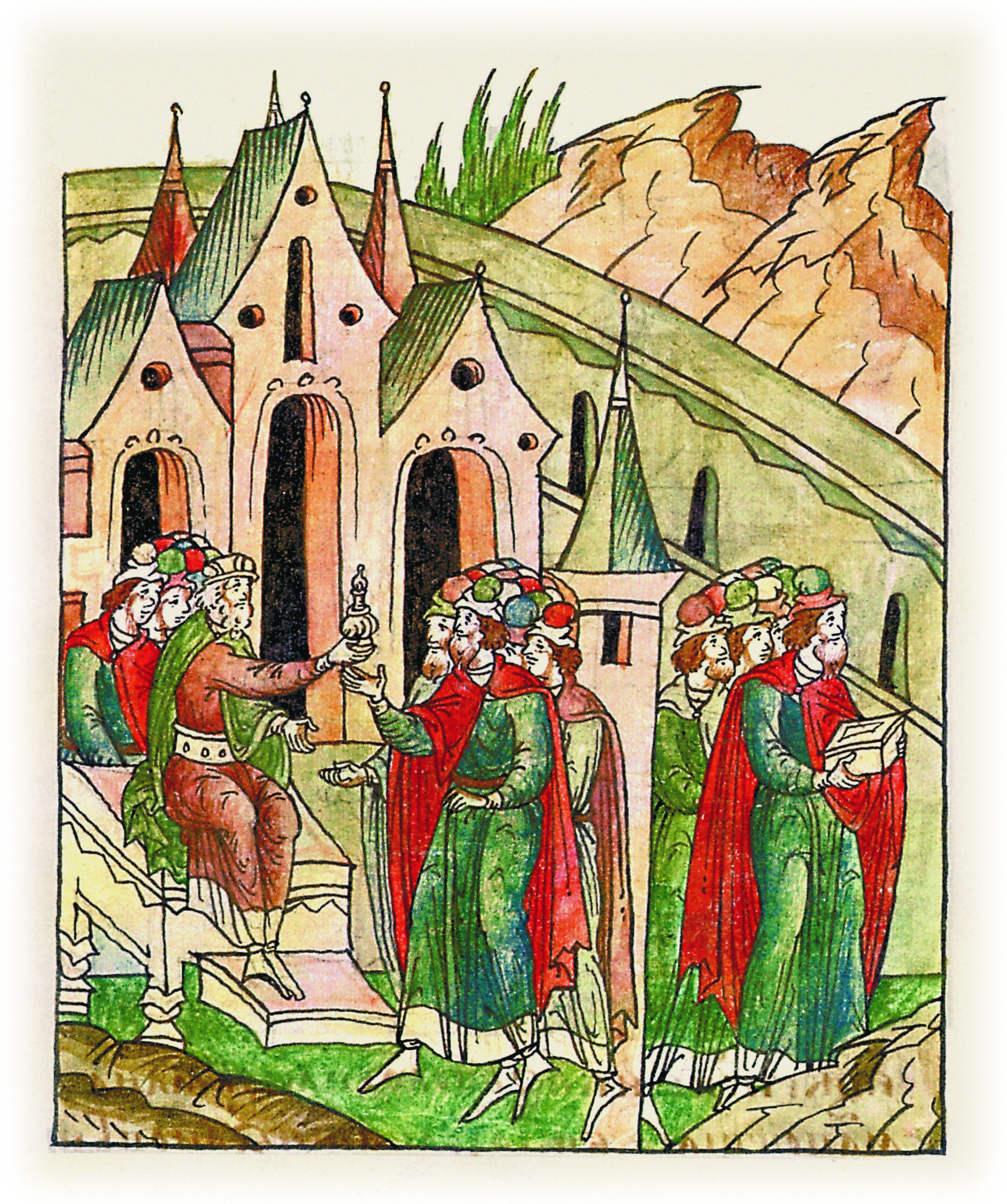 Ругодивские посадники Яким и Захар приезжают в Москву. Воеводы царя Ивана Васильевича Алексей Адашев и Иван Михайлов сообщают им, что государь пожалует их, если сдадут его воеводам помимо Ругодива Вышгород.