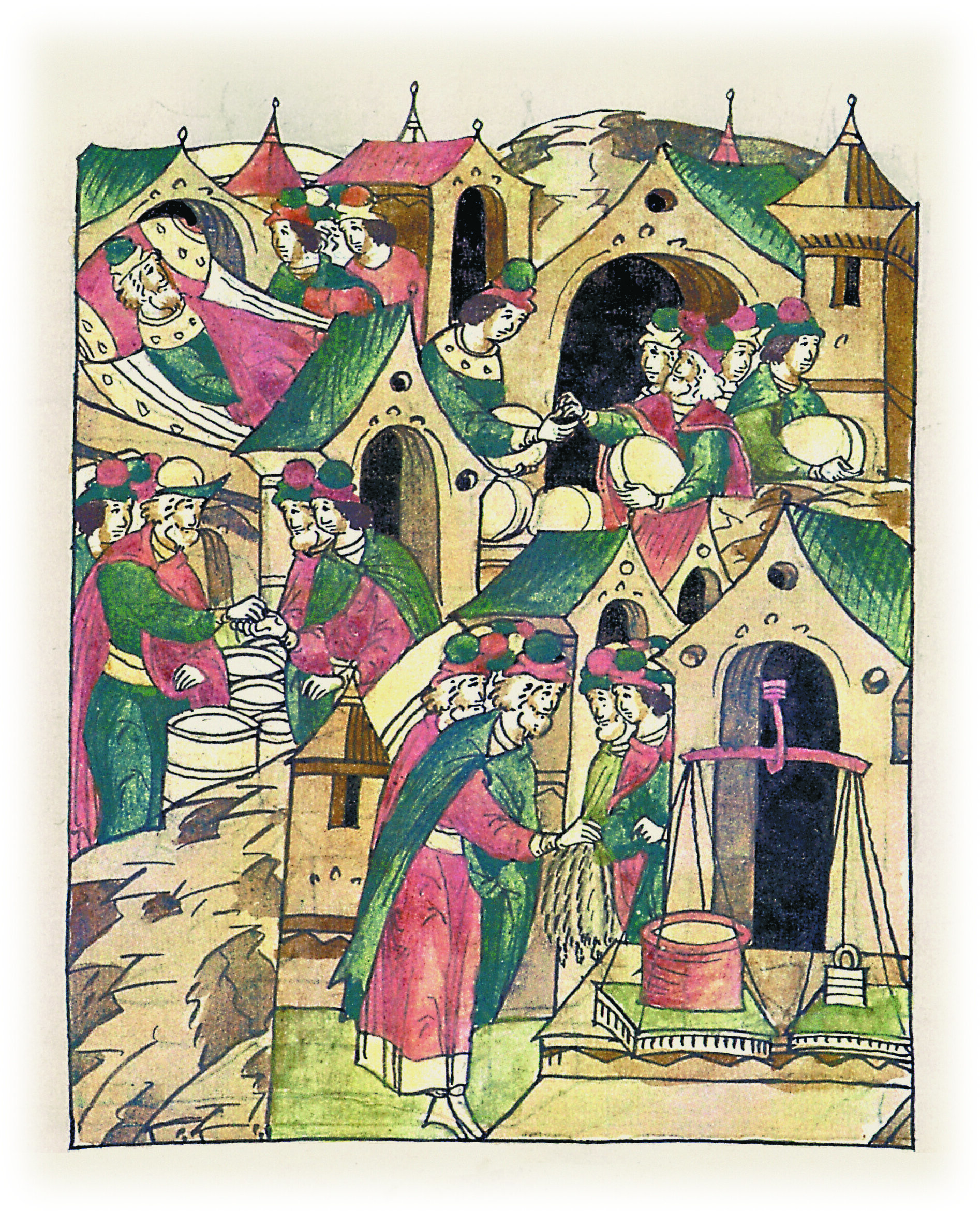 Кадь ржи в Новгороде стоит четыре гривны, хлеб - две ногаты, пуд меда - десять кун. Кончина в Новгороде посадника Васьки Буслаевича.