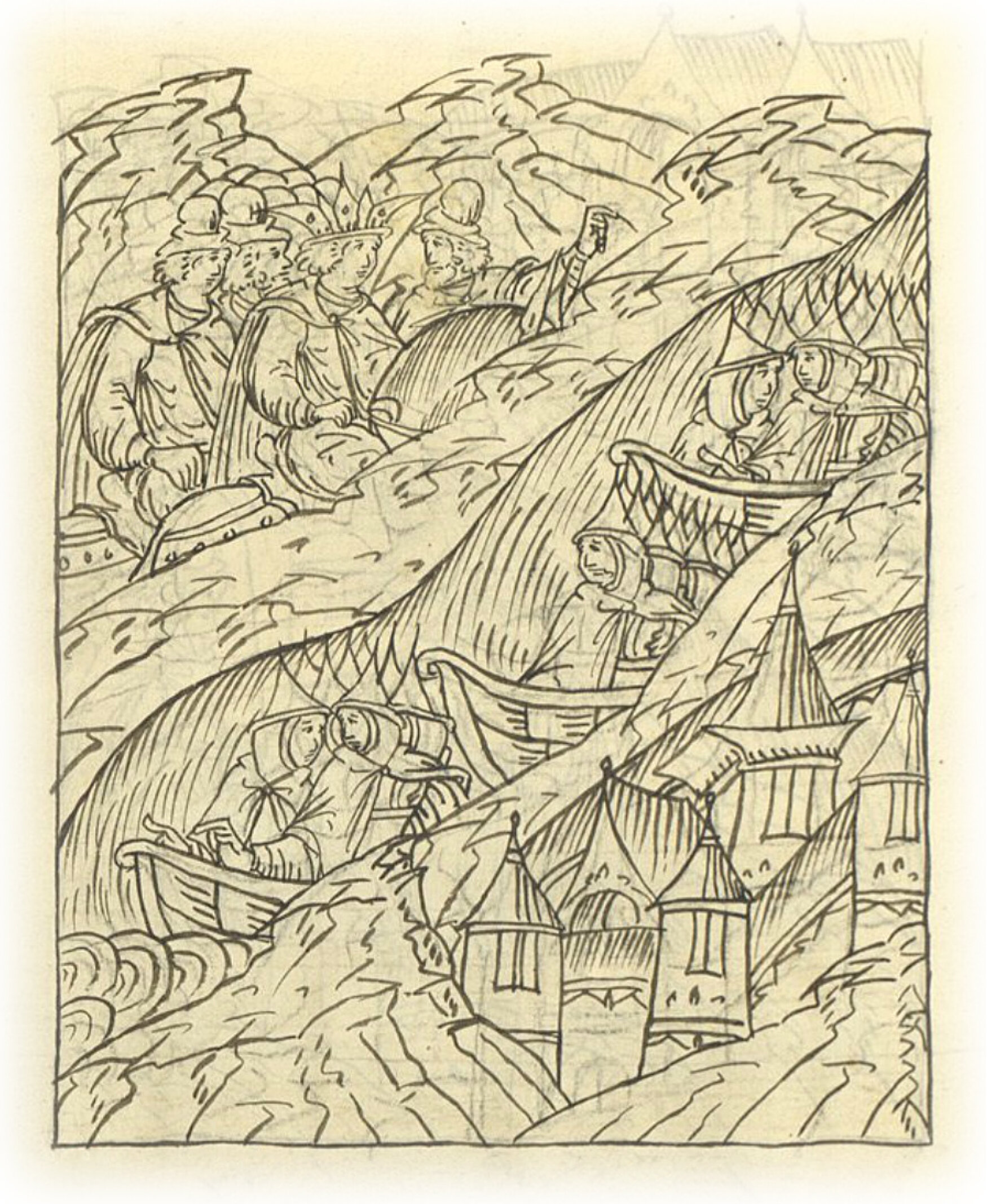 Казанцы ищут место для переправы царя.