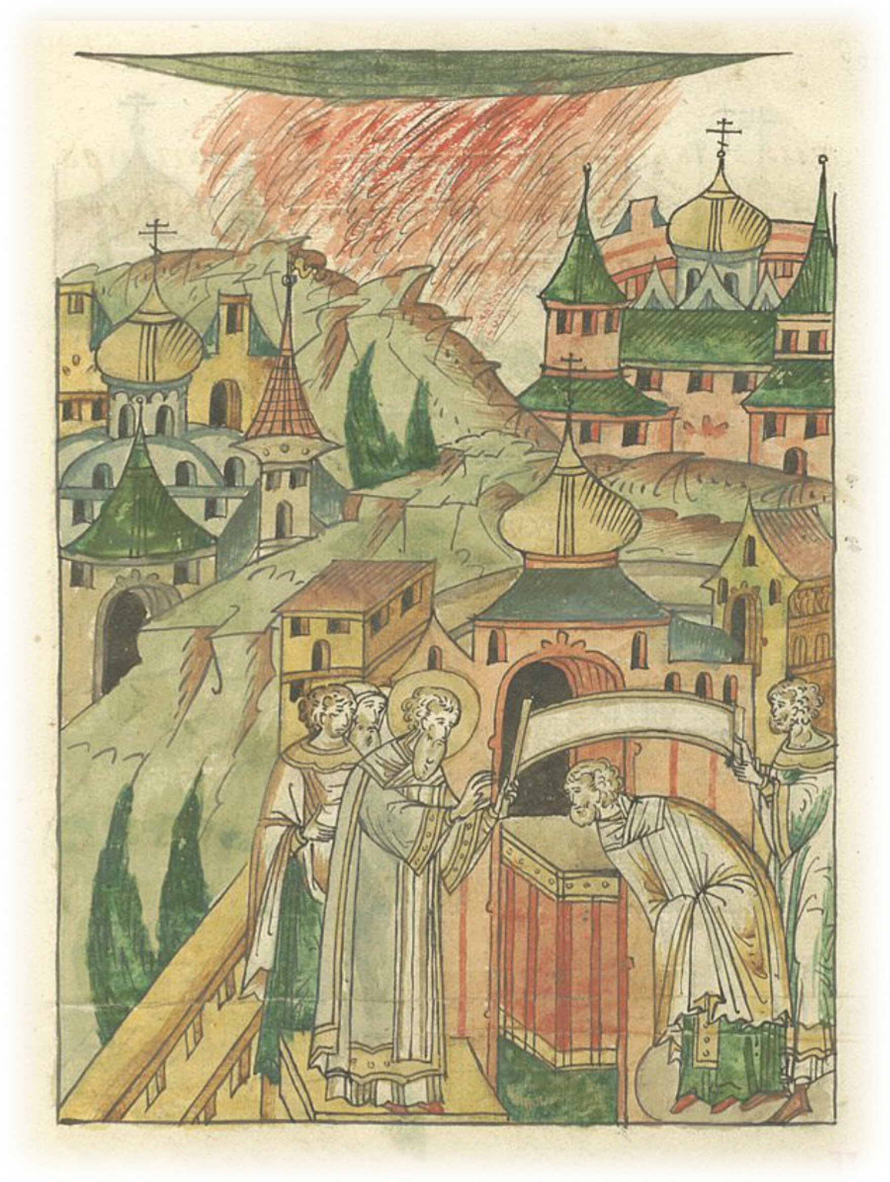 Страшные грозы. Митрополит Киевский и всея Руси Киприан ставит на Голянище архимандрита Симоновского Илариона в епископы Коломны.