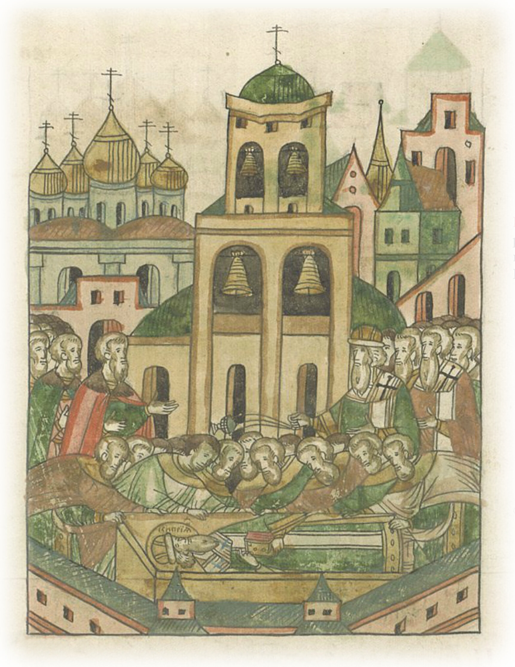 Перенесение в новую церковь мощей преосвященных митрополитов Киприана, Фотия и Ионы чудотворца, и мощей князя Юрия Даниловича.