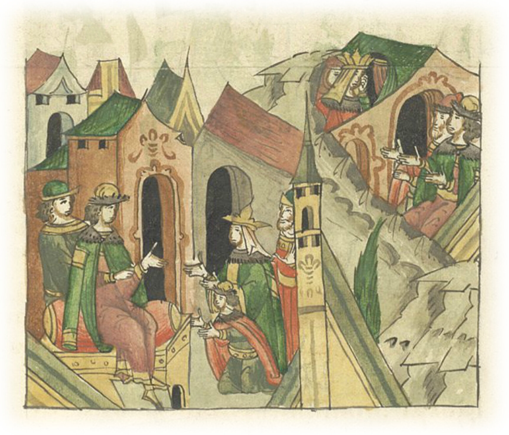 Ругодивские посадники Яким и Захар приезжают в Москву. Воеводы царя Ивана Васильевича Алексей Адашев и Иван Михайлов сообщают им, что государь пожалует их, если сдадут его воеводам помимо Ругодива Вышгород.