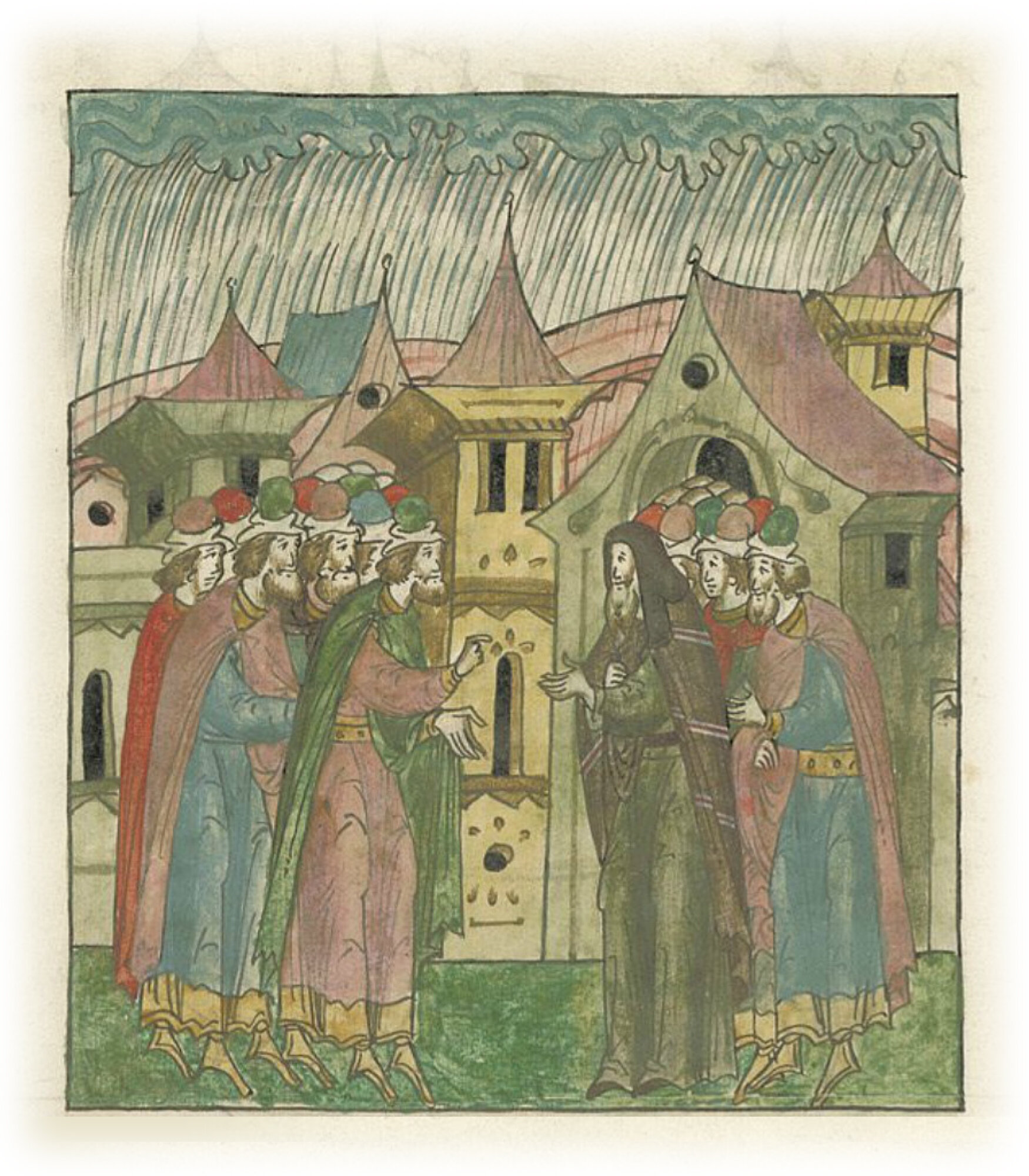Новгородцы ропщут на своего архиепископа Арсения, что из-за него идут длительные дожди, потому что он согнал архиепископа Антония на Хутынь.