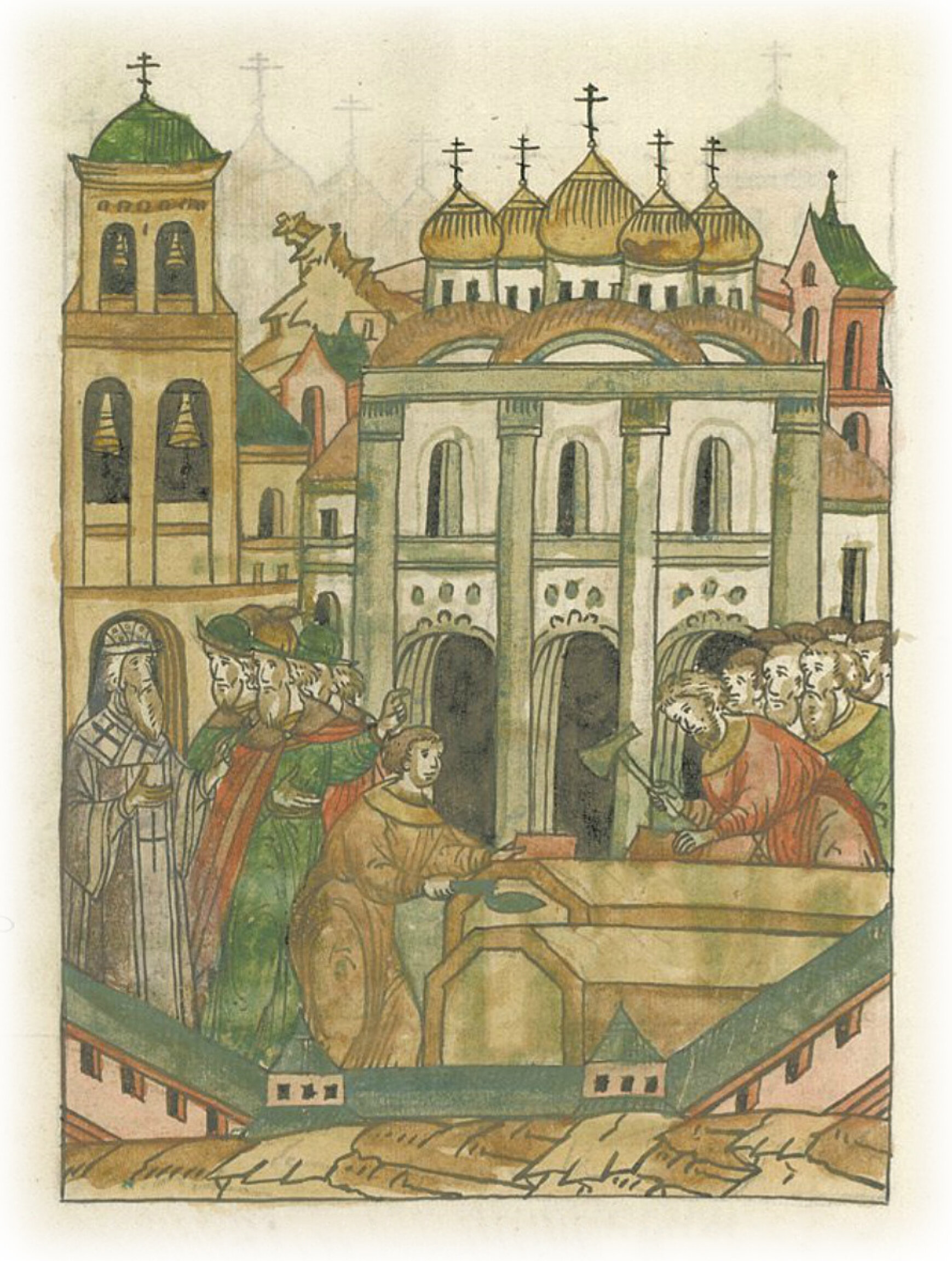 Перенесение в новую церковь мощей преосвященных митрополитов Киприана, Фотия и Ионы чудотворца, и мощей князя Юрия Даниловича.