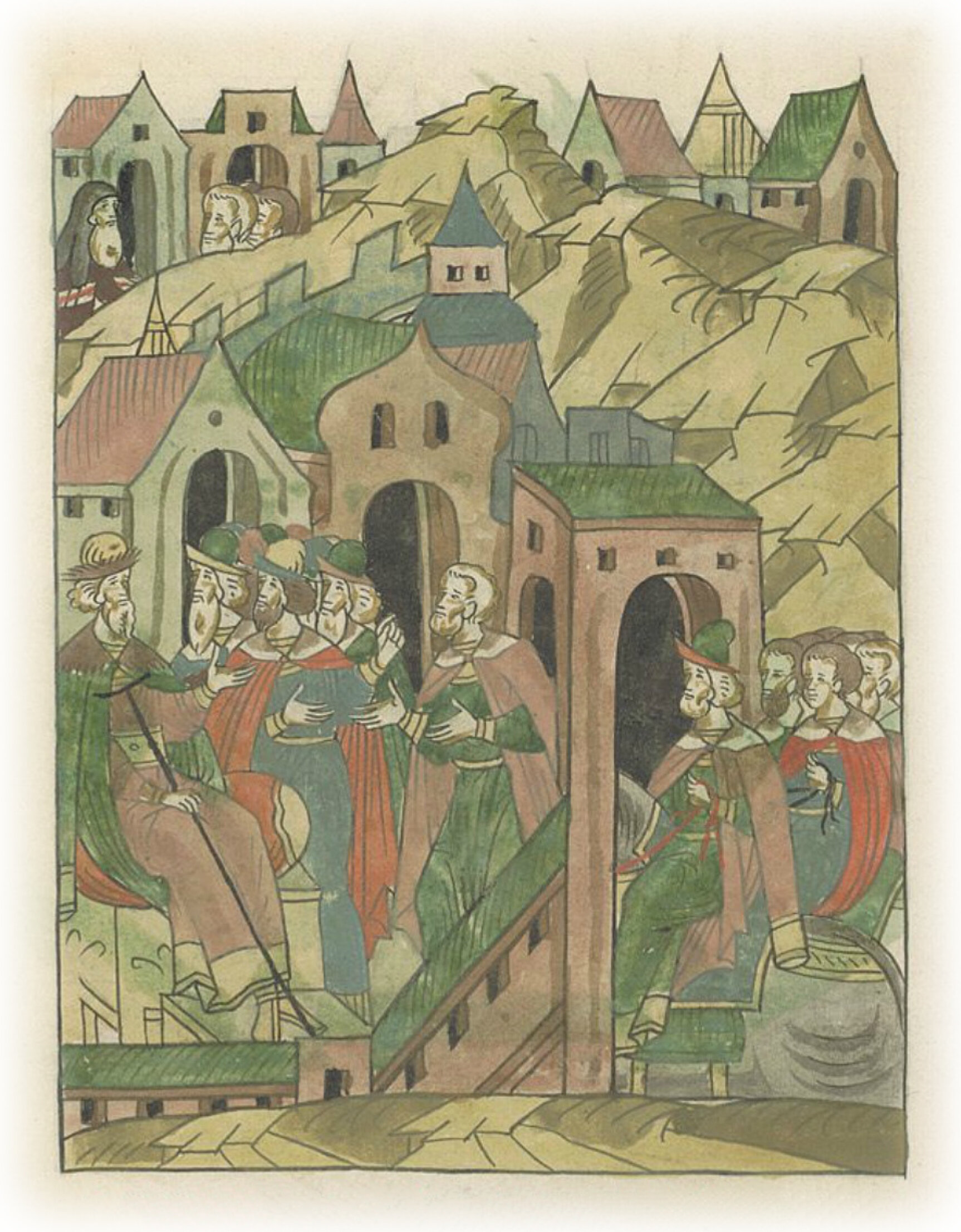 Ругодивские посадники Яким и Захар приезжают в Москву. Воеводы царя Ивана Васильевича Алексей Адашев и Иван Михайлов сообщают им, что государь пожалует их, если сдадут его воеводам помимо Ругодива Вышгород.