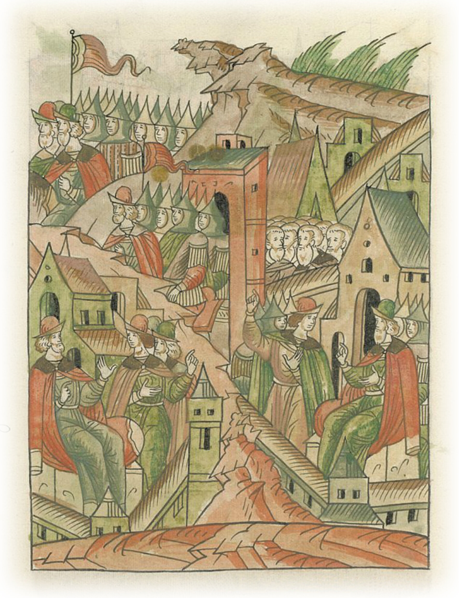 Языки говорят воеводам царя Ивана Васильевича, что магистр окопался большим рвом вокруг города Рындола, бьет из пушек и пищалей и приступает к Рындолу.