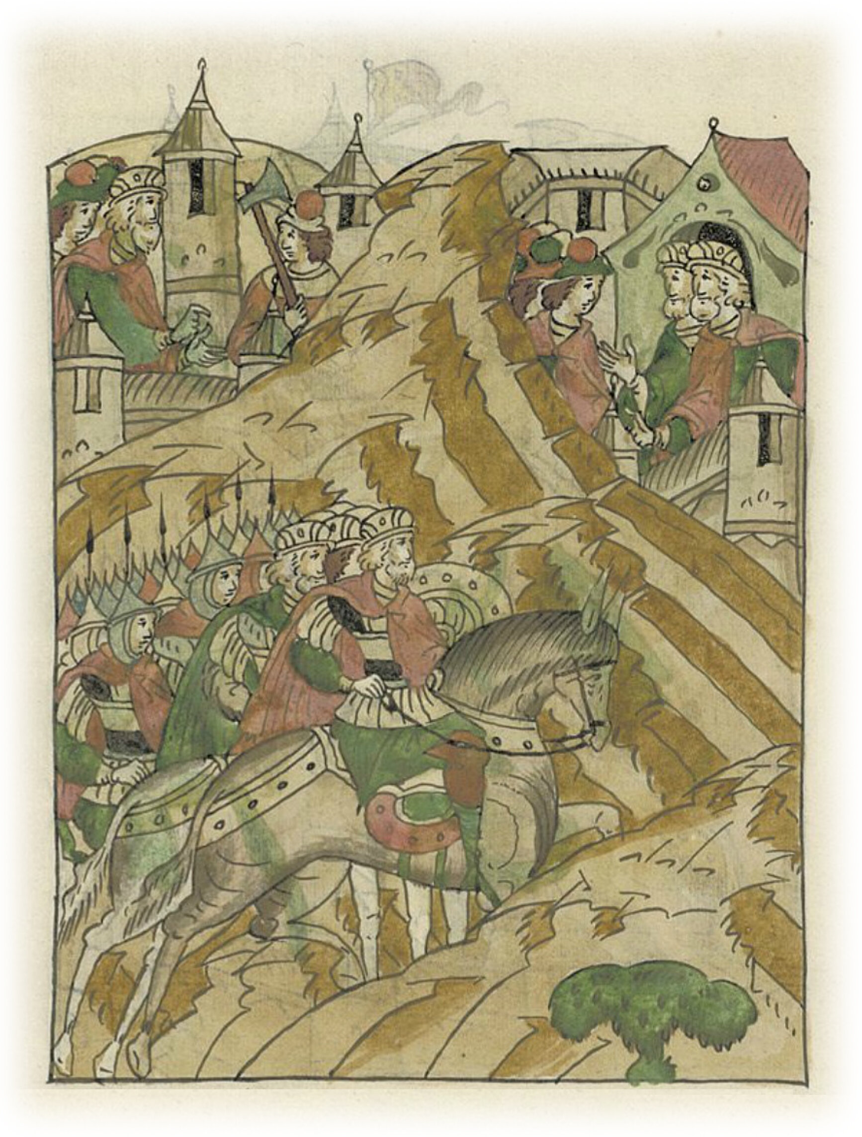 Языки говорят воеводам царя Ивана Васильевича, что магистр окопался большим рвом вокруг города Рындола, бьет из пушек и пищалей и приступает к Рындолу.
