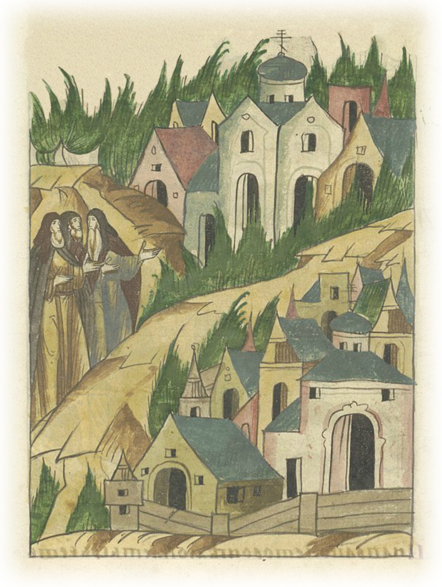 А за тем Саввиным монастырем – Асафатова дебрь, она же и долина. И там также чернецы жили многие. И там есть келья великого Иоанна Дамаскина, в которой он жил. А (если) шествовать к Саввину монастырю, то расстояние многое.