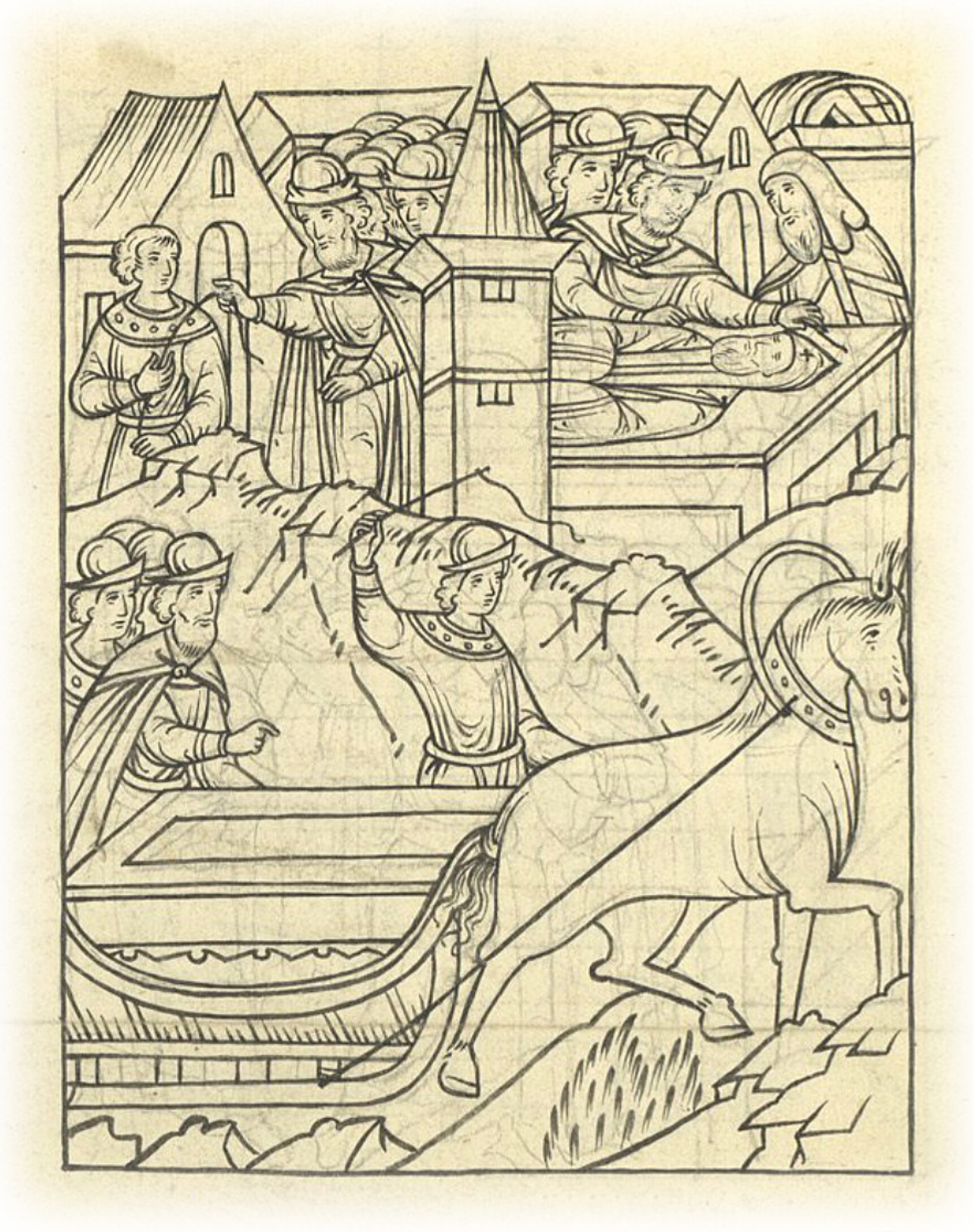 И поговоря c митрополитом, Михайло Юрьевич послал за шатерничим Русином Ивановым, сыном Семенова, снять с него меру, с великого князя, и повелел ему гроб привезти каменный.