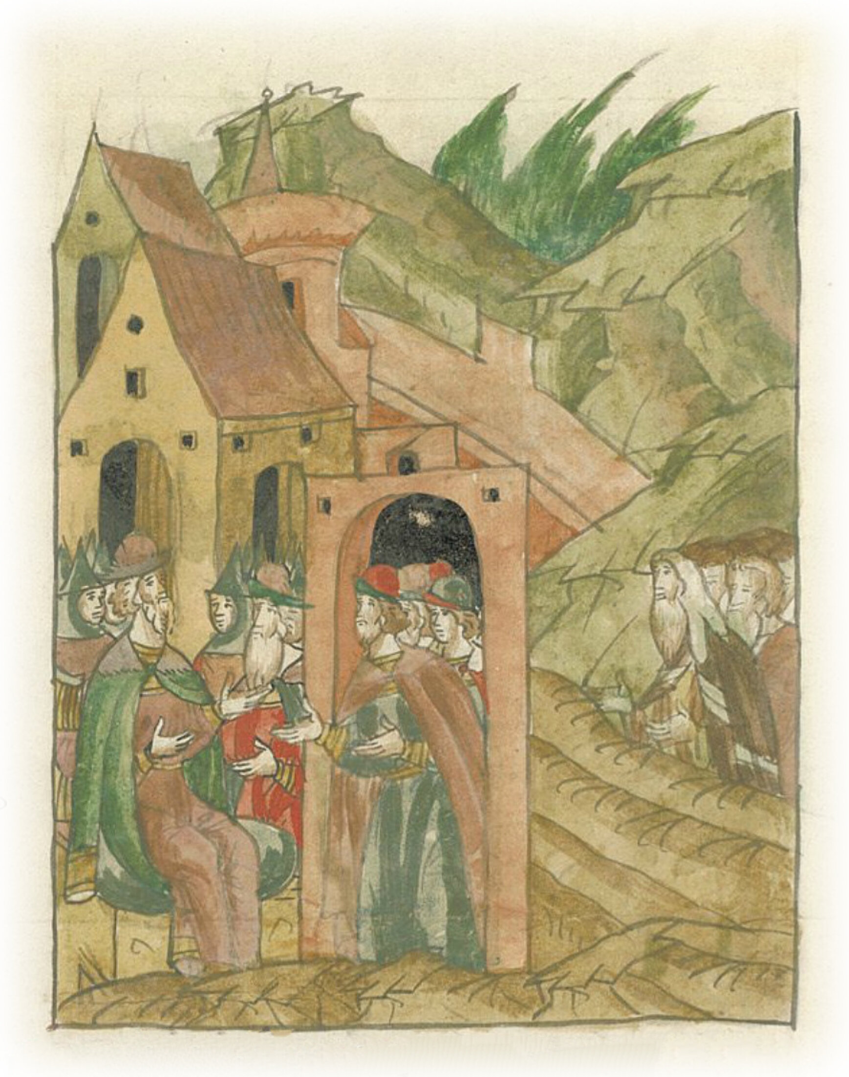 Ругодивские посадники Яким и Захар приезжают в Москву. Воеводы царя Ивана Васильевича Алексей Адашев и Иван Михайлов сообщают им, что государь пожалует их, если сдадут его воеводам помимо Ругодива Вышгород.