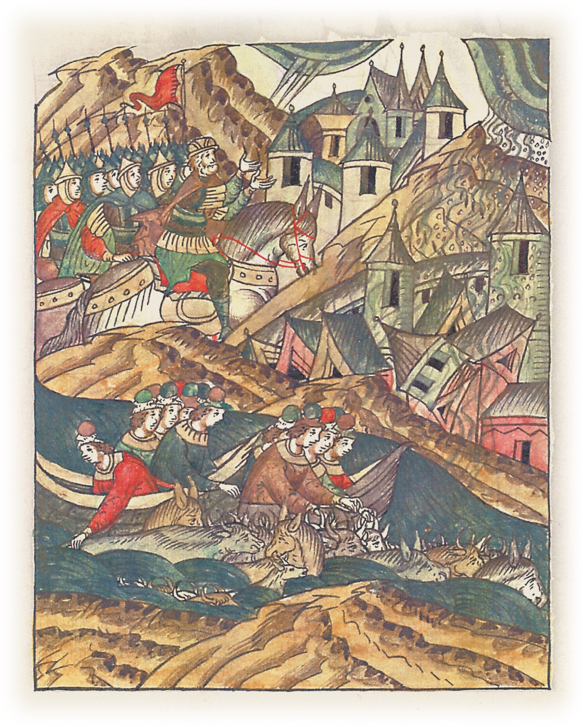 Воеводы царя Ивана Васильевича, разделившись, идут в погоню за царем Емгурчеем.