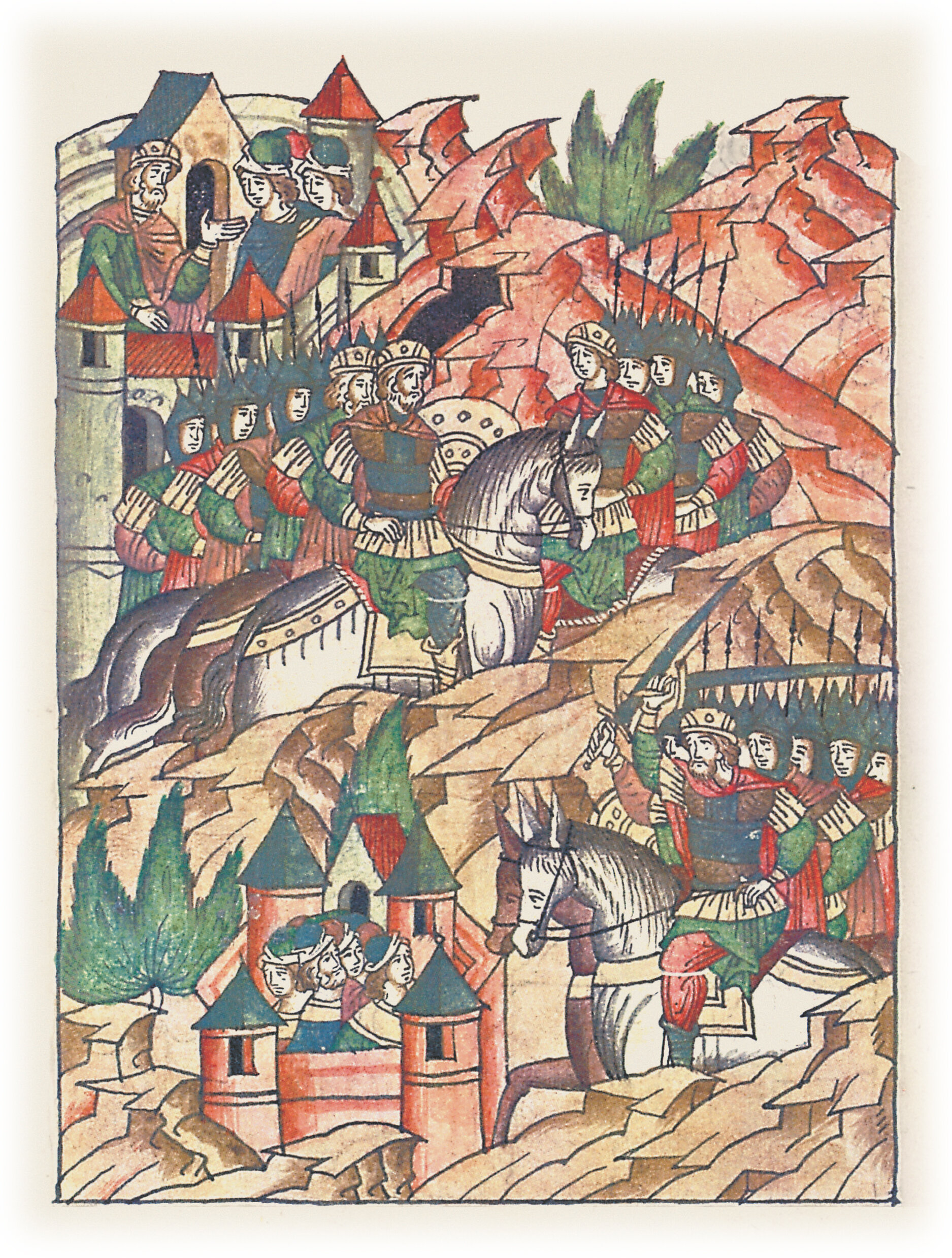 Языки говорят воеводам царя Ивана Васильевича, что магистр окопался большим рвом вокруг города Рындола, бьет из пушек и пищалей и приступает к Рындолу.