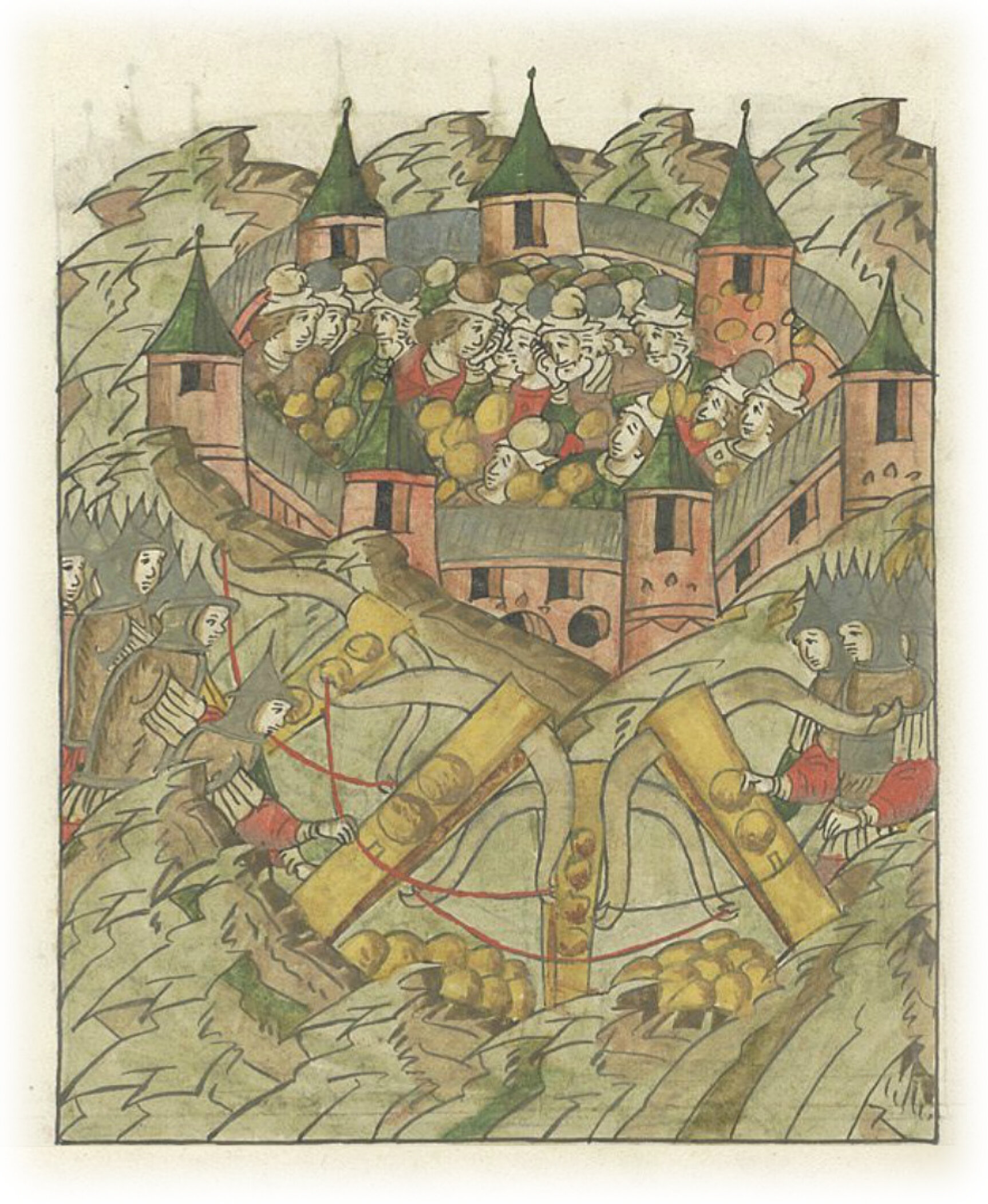 Языки говорят воеводам царя Ивана Васильевича, что магистр окопался большим рвом вокруг города Рындола, бьет из пушек и пищалей и приступает к Рындолу.