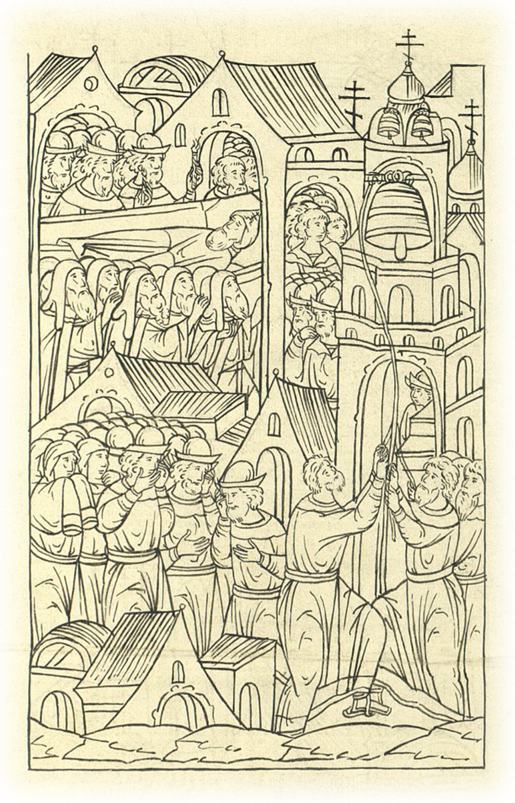 Тогда взяли тело великого князя инока Варлаама старцы Троицкие и Иосифовские и понесли его в переднюю избу; и было слез и рыдания множество в людях, которые его и не видели.