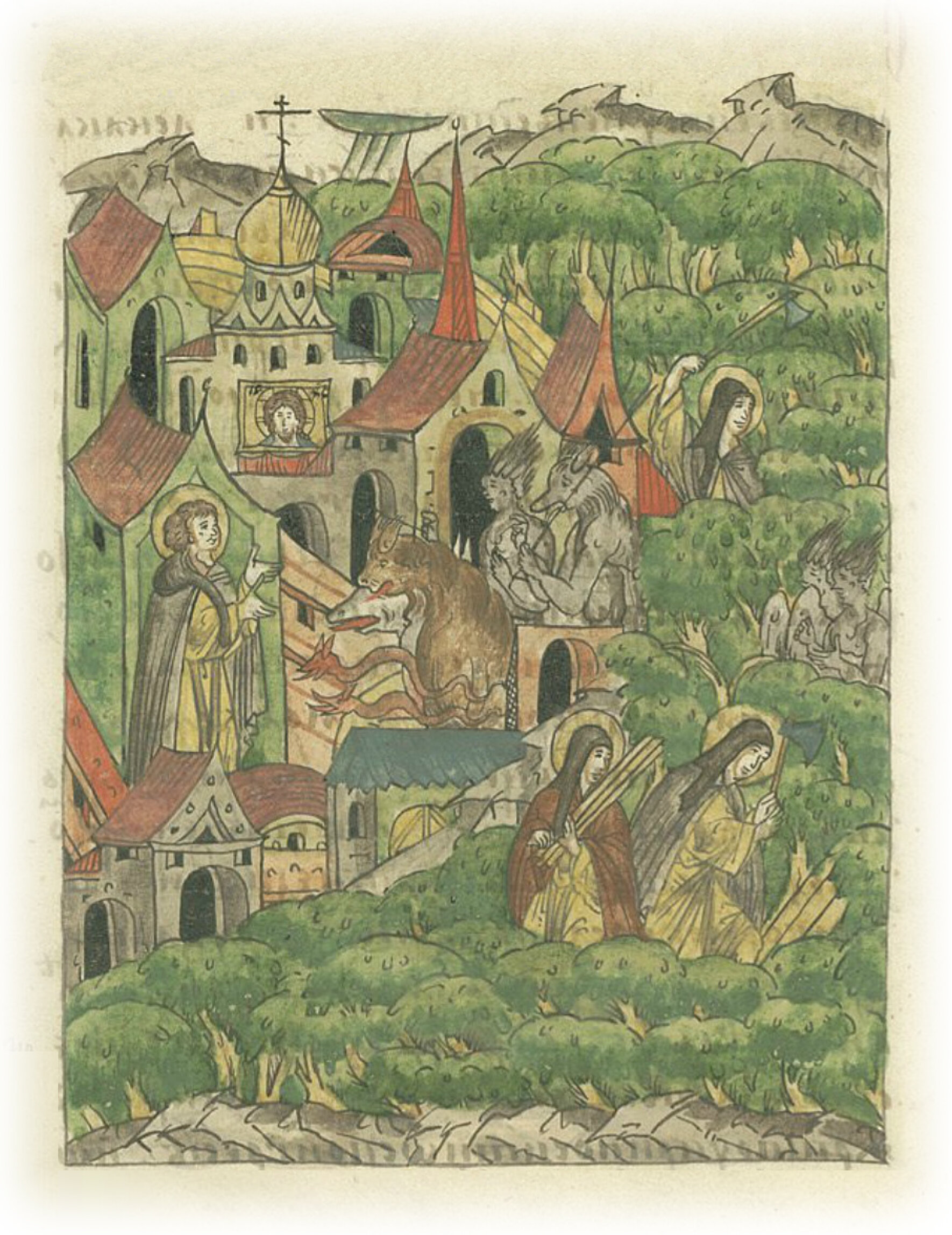 Повесть о преподобном Сергии Радонежском. Преподобный игумен Сергий молитвой побеждает бесов.
