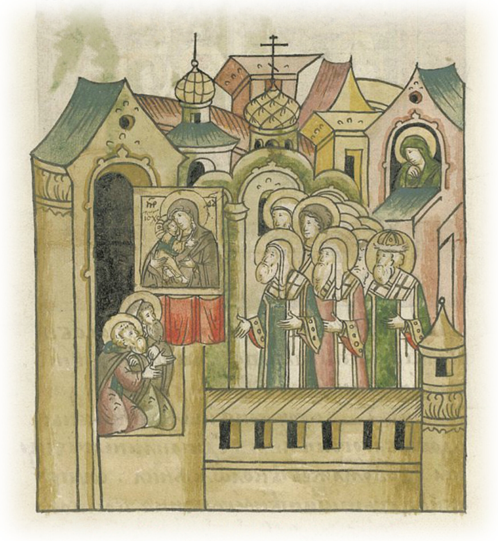То же чудо видела иная вдовица. И еще иная некая вдовица, сродница Ивану Третьякову, царскому казначею, которая тогда сидела в верхней светелке его дома, который был близ тех же Фроловских ворот, видела в оконце то же дивное видение.