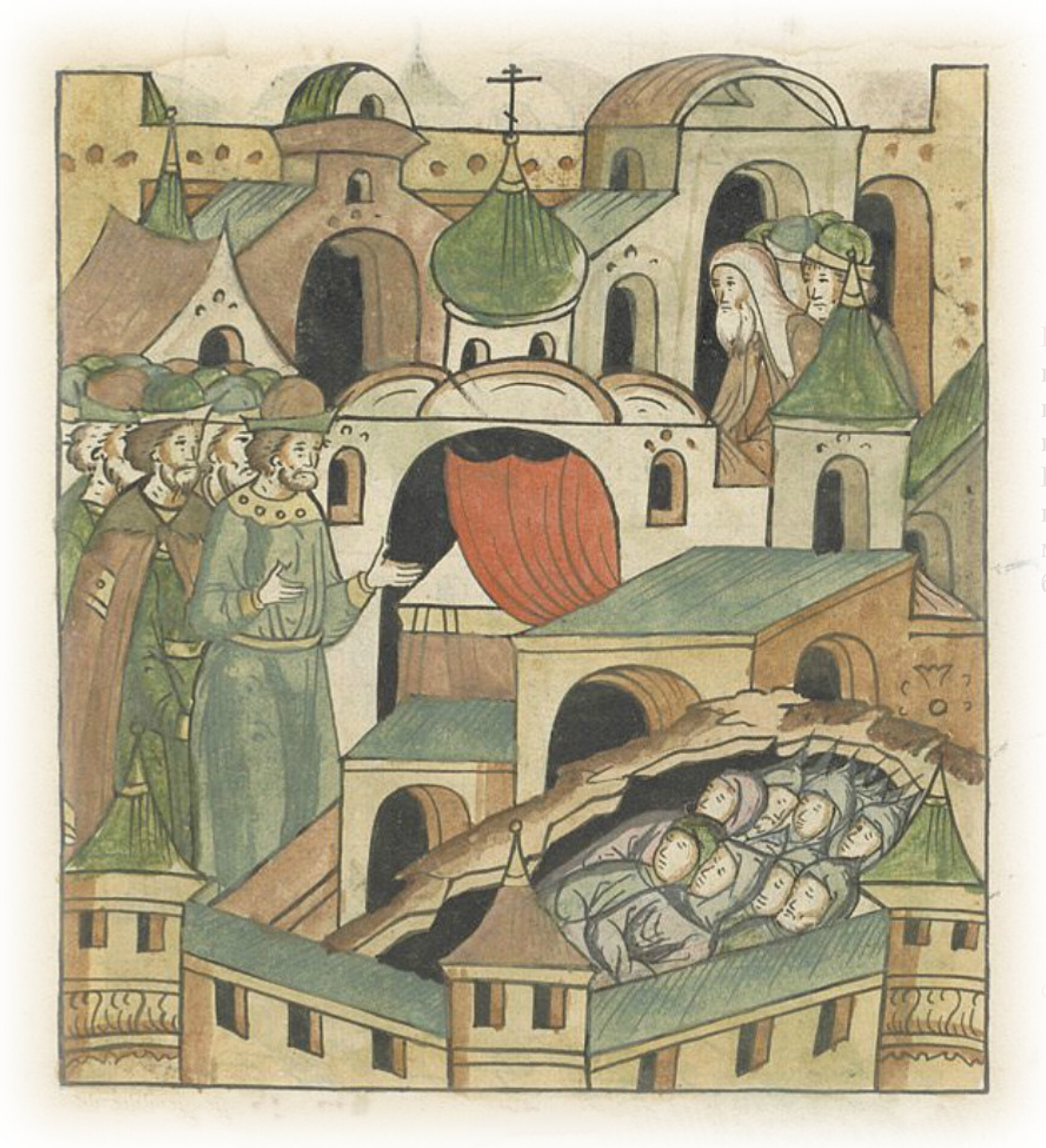И Божьею благодатью понемногу поветрие прекратилось. А от того поветрия в Великом Новгороде вымерло православных христиан мужского пола и женского более трех тысяч душ.