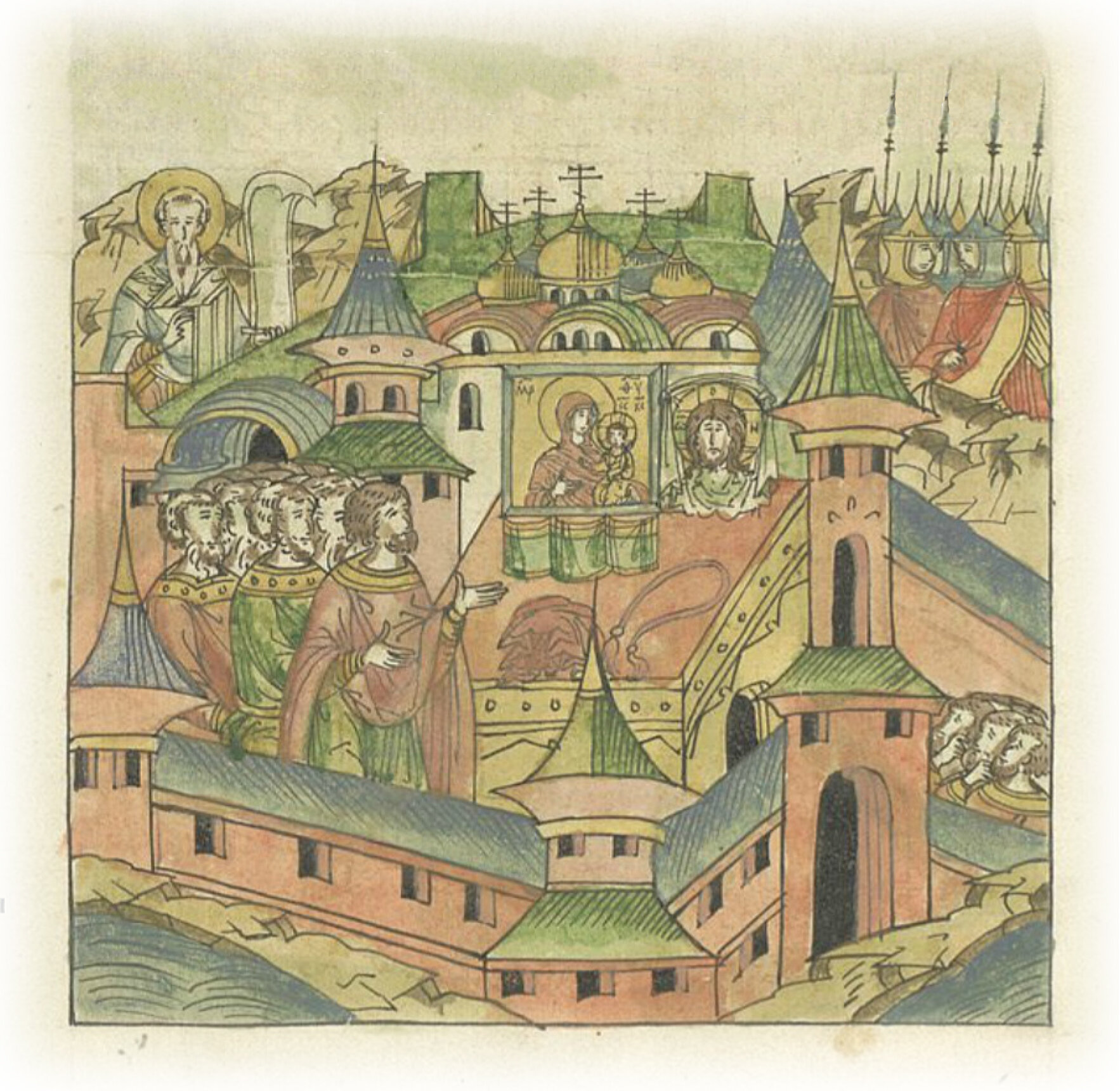 которым иногда и блаженный Андрей Критский удивлялся, говоря: «Воистину город этот выше слова и разума». К тому же и пренепорочная владычица мать Христа Бога нашего в прежние времена Царствующий город сохраняла и покрывала от бед, и спасала от неисцелимых напастей. И такими великими и неизреченными благодеяниями и дарованиями пресвятой Богородицы сподобился этот город, что, думаю, и всему миру не уподобиться ему. Но естество наше тяжкосердно, нерадиво и неистово, если от милости Божьей и щедрот Его отвращаемся и к злодеянию и беззаконию обращаемся, чем Бога и пречистую Его матерь гневим и от славы своей и чести отпадаем. Как писано: «Злодеяния и беззакония уничтожат престол сильных», и еще: «Расточил гордые мысли сердец их и низложил сильных с престола». Также и этот царствующий город бессчетными согрешениями и беззакониями от щедрот и благодеяний пречистой Богоматери отпал, страдая бесчисленными бедами и различными напастями многие годы. Также и ныне в последнее время из-за грехов наших: иногда приходом неверных, иногда голодом и частыми моровыми поветриями, иногда же междоусобными бранями, из-за которых оскудели сильные, обнищали люди, и преуничижился город, и смирился (с этим).