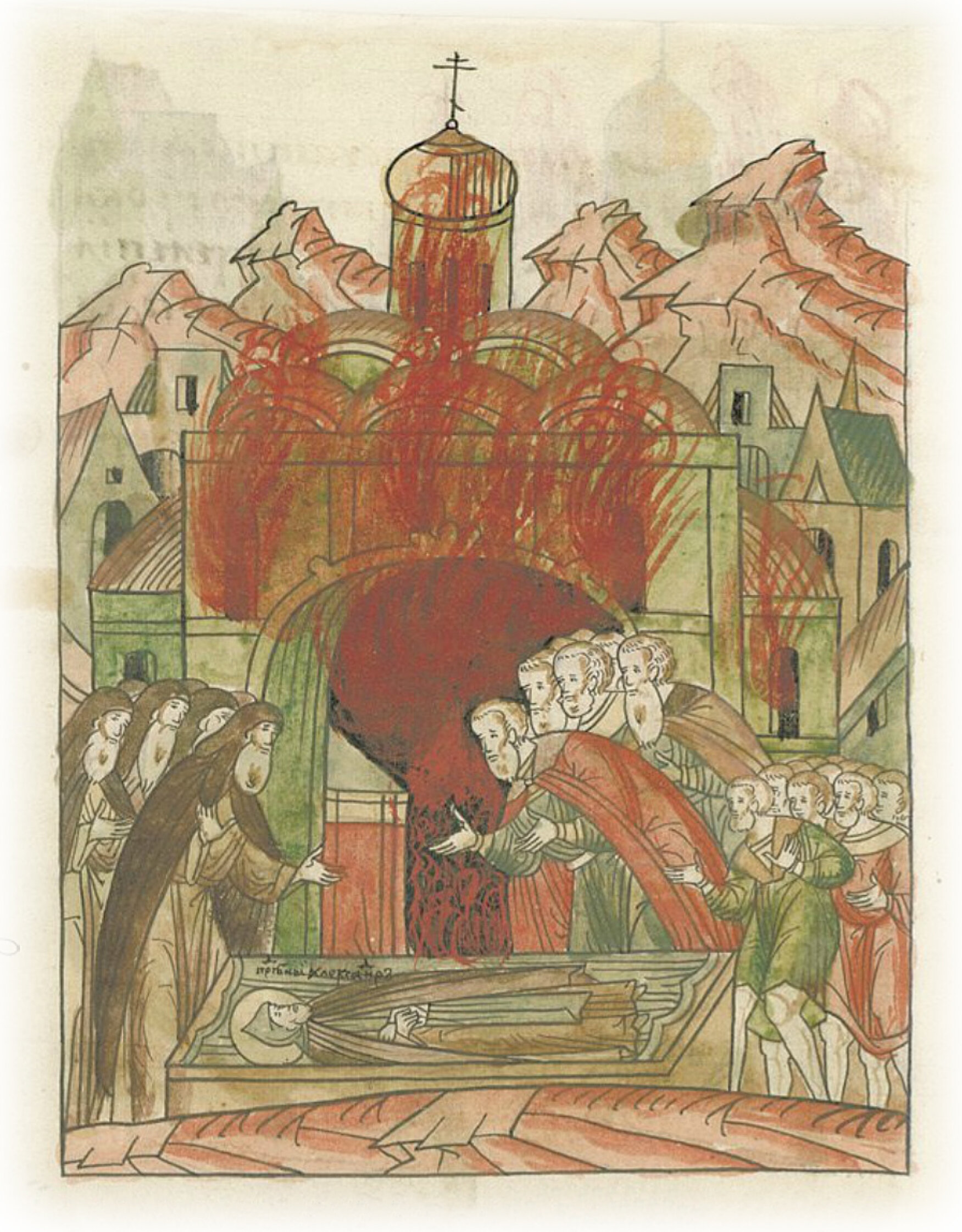 Чудотворные же мощи святого и праведного великого князя Александра Ярославича, которые хотя немного и пострадали от огненного знамения, но были сохранены Богом, как и пелена, что была в его гробе, осталась неповрежденной от непостоянного того огня; ибо известно, что Господь, по словам пророка, хранит кости Своего угодника, и ни одна из них не пострадает. И так Божьей благодатью от честного его гроба и доныне многие чудеса и исцеления происходят, о них же и здесь говорится: