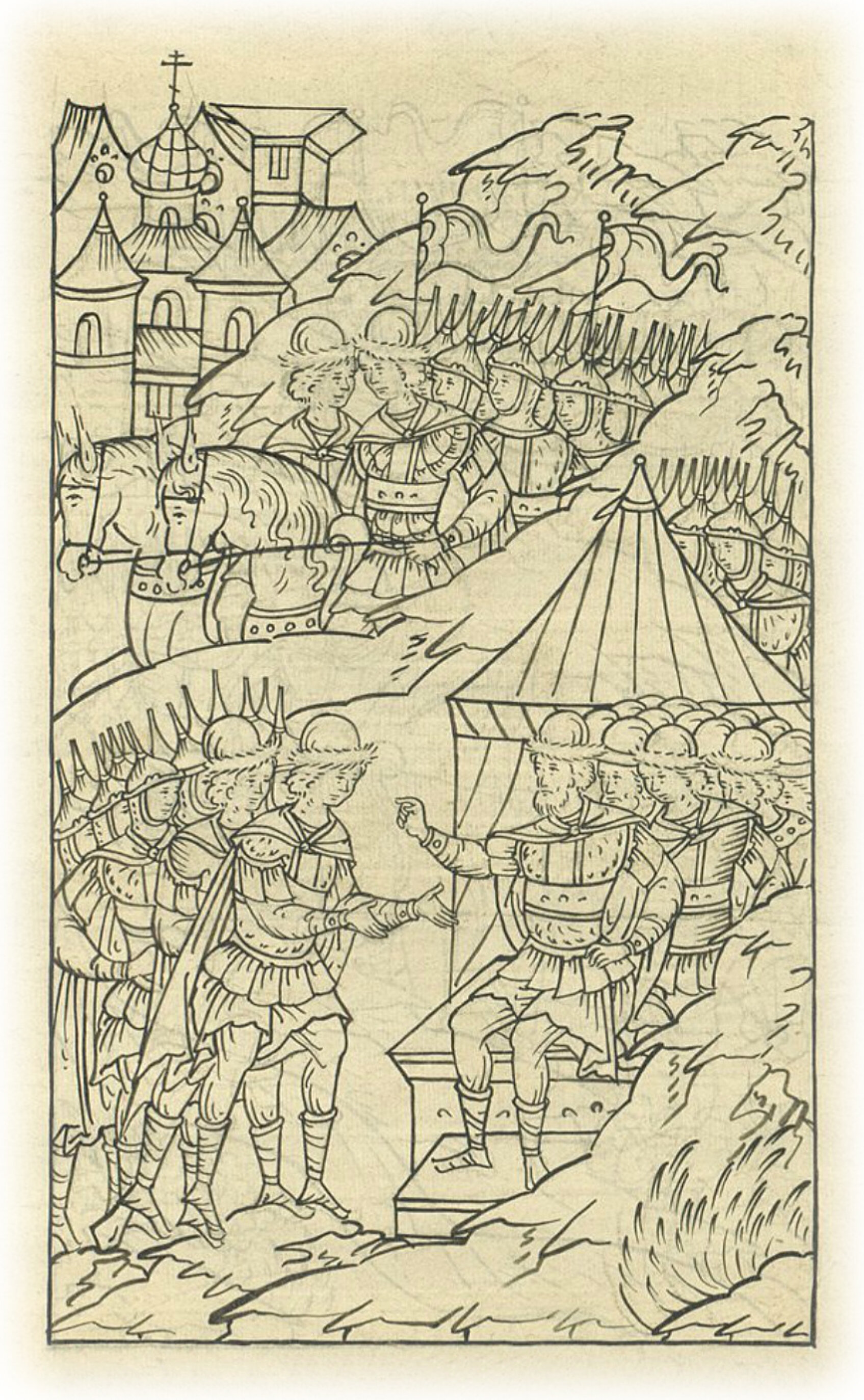 Языки говорят воеводам царя Ивана Васильевича, что магистр окопался большим рвом вокруг города Рындола, бьет из пушек и пищалей и приступает к Рындолу.