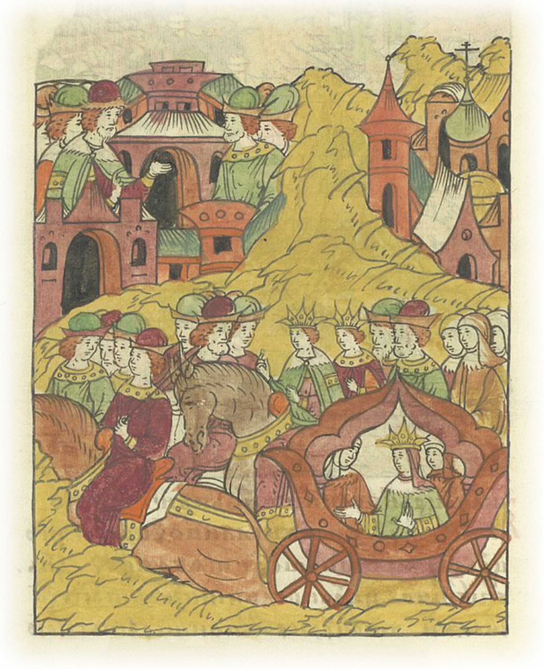 Царь Иван Васильевич велит своей царице Марье и сыновьям царевичам Ивану и Федору ехать из Александровской слободы в Москву.
