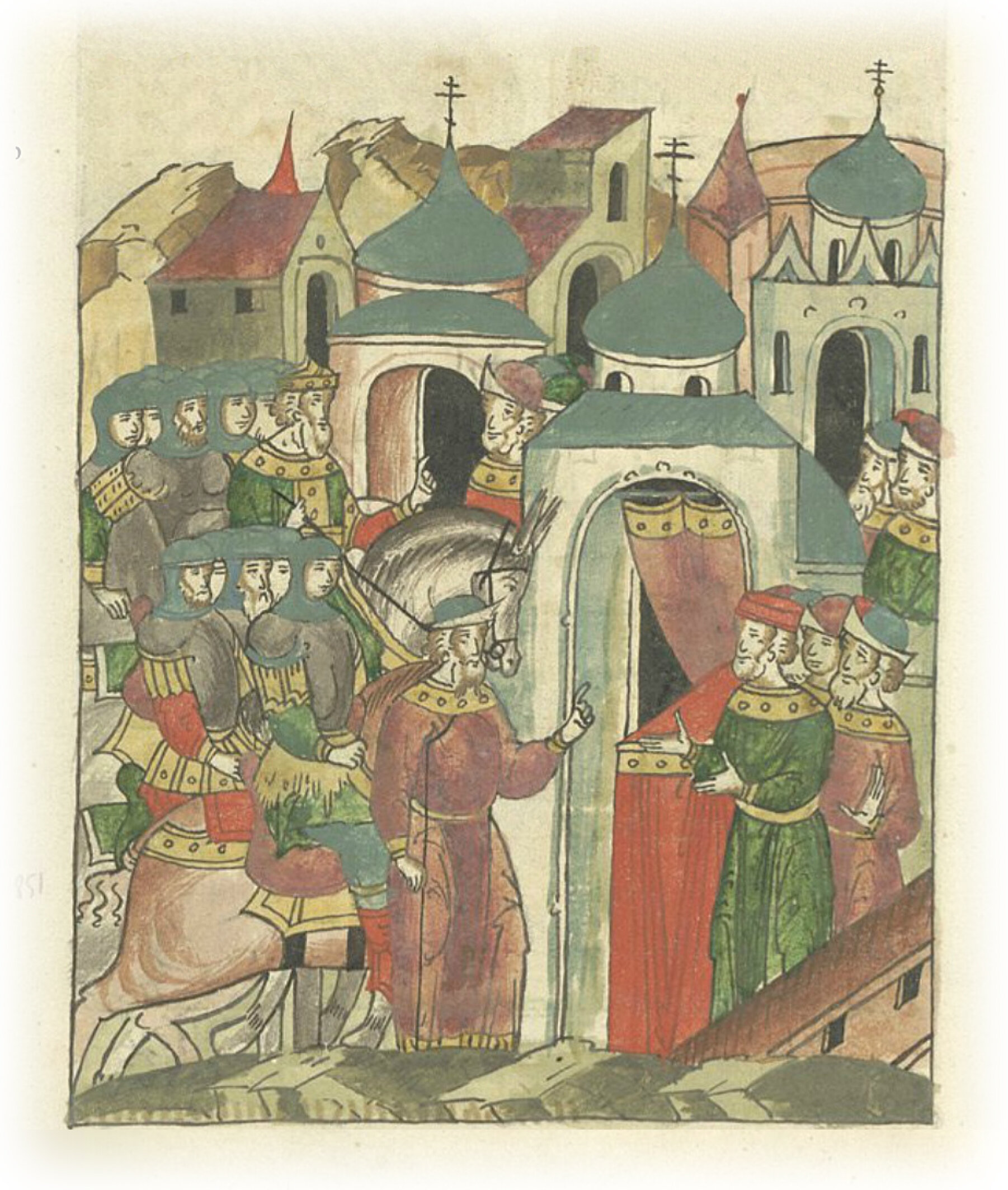 Ругодивские посадники Яким и Захар приезжают в Москву. Воеводы царя Ивана Васильевича Алексей Адашев и Иван Михайлов сообщают им, что государь пожалует их, если сдадут его воеводам помимо Ругодива Вышгород.