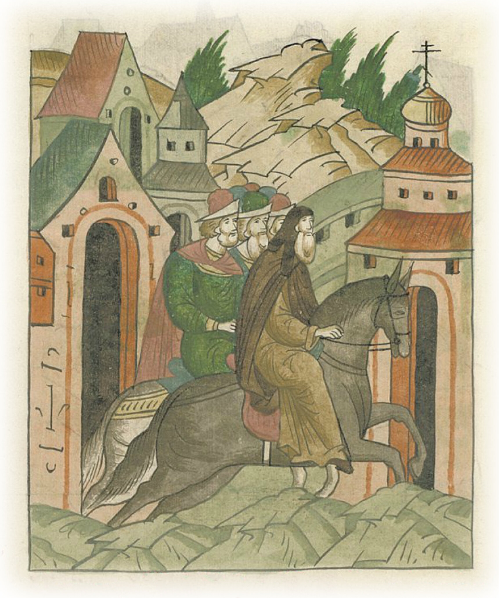 Новгородский архиепископ Сергий оставляет архиепископию и приходит в Троице-Сергиев монастырь для своего пострига.