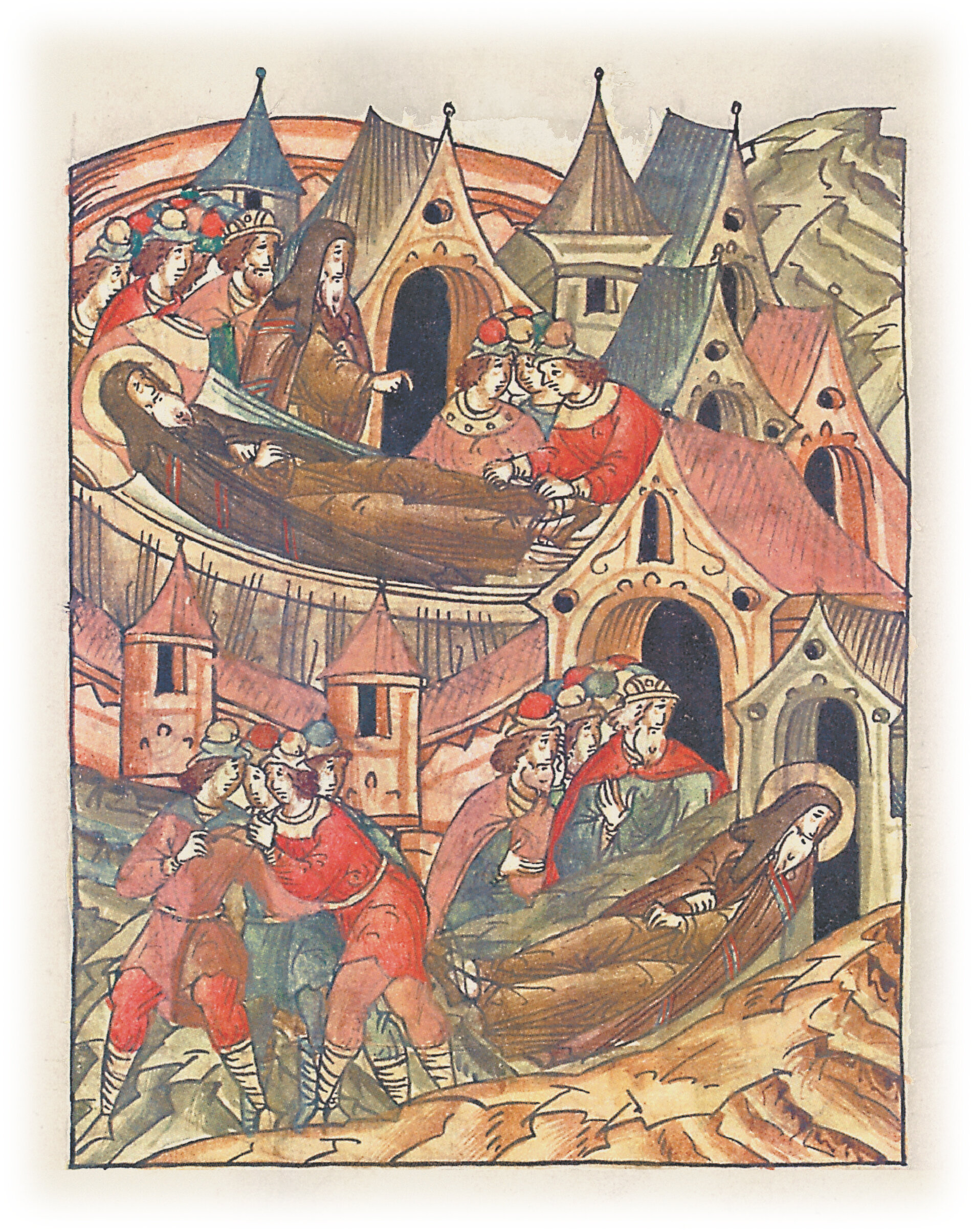 И после смерти его Антоний, епископ Черниговский, сотворил так. Князь же великий Черниговский Святослав Олегович и все князья, и бояре его удивились и ужаснулись о пречудном деле его и о смирении многом.