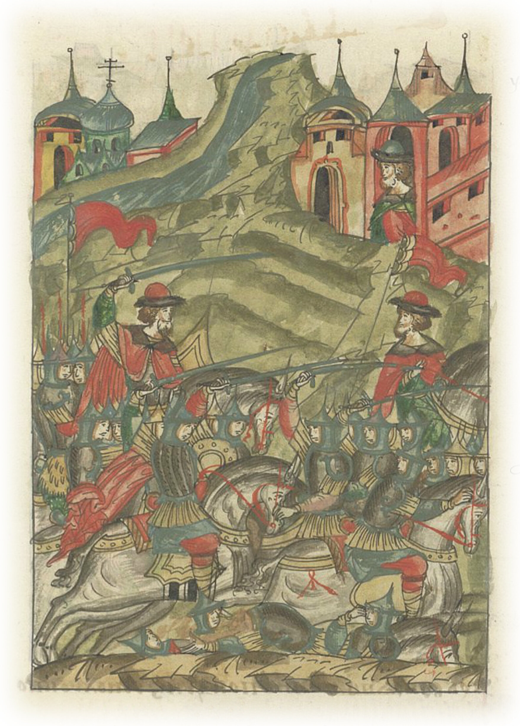 Языки говорят воеводам царя Ивана Васильевича, что магистр окопался большим рвом вокруг города Рындола, бьет из пушек и пищалей и приступает к Рындолу.
