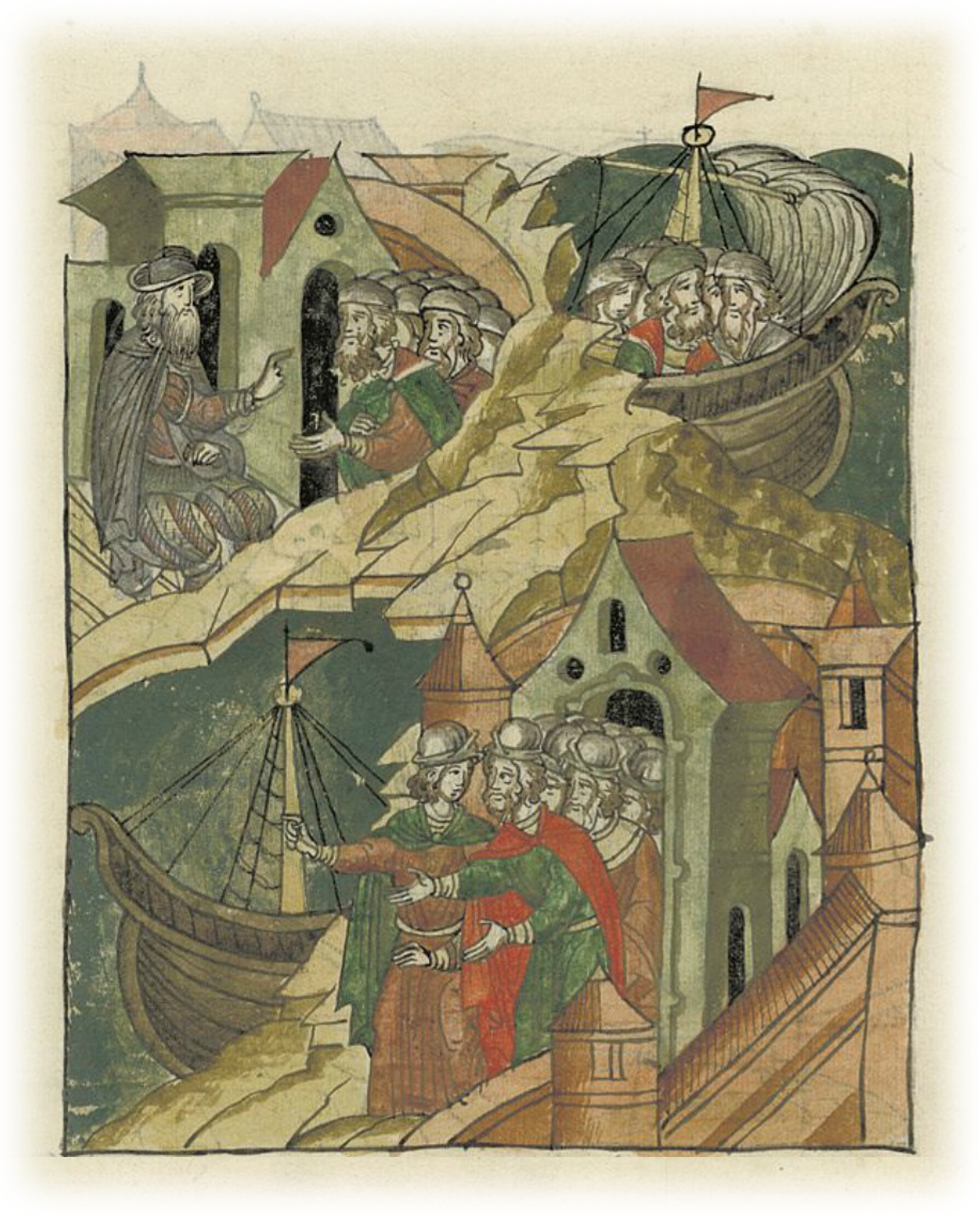 Ругодивские посадники Яким и Захар приезжают в Москву. Воеводы царя Ивана Васильевича Алексей Адашев и Иван Михайлов сообщают им, что государь пожалует их, если сдадут его воеводам помимо Ругодива Вышгород.